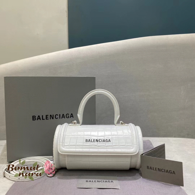 [스페셜오더]BALENCIAGA-597804 발렌시아가 화이트 스몰 Croc Embossed 라운드 탑 핸들백