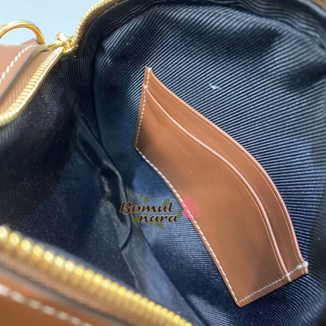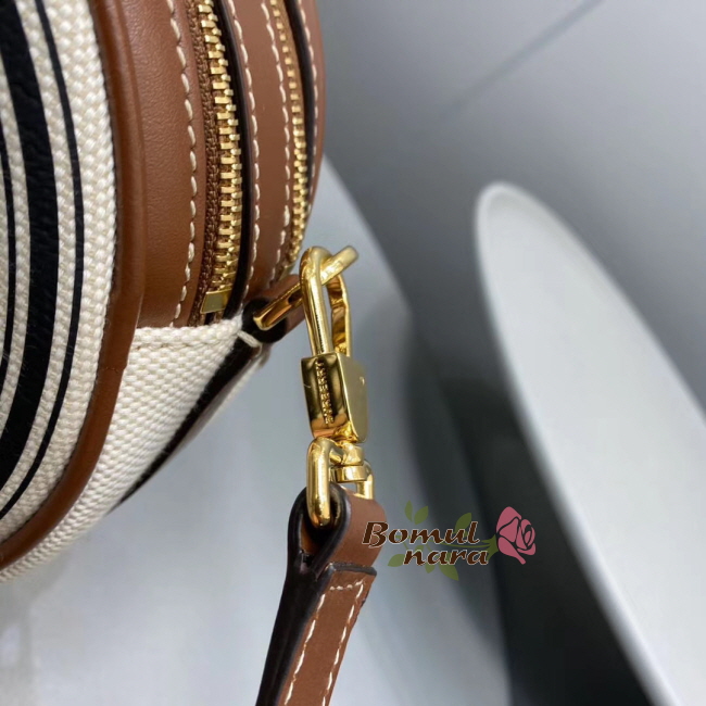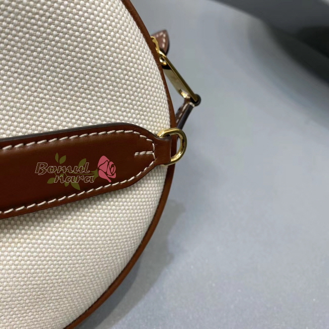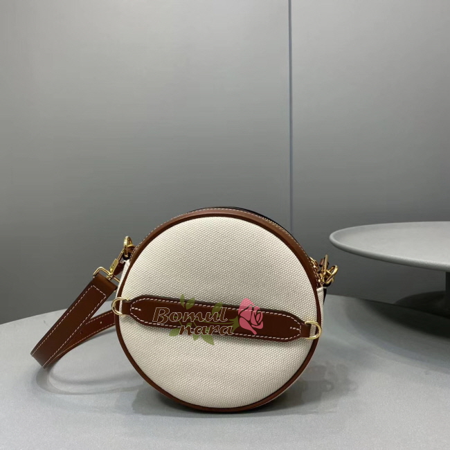 원형 미니백. 크로스바디로 착용하거나 스트랩을 탈착해
