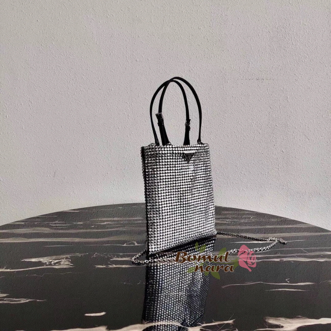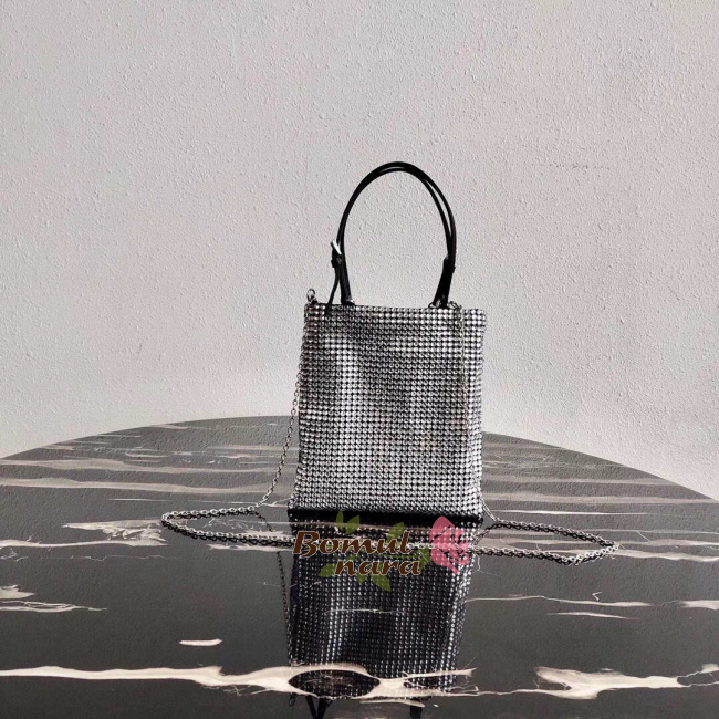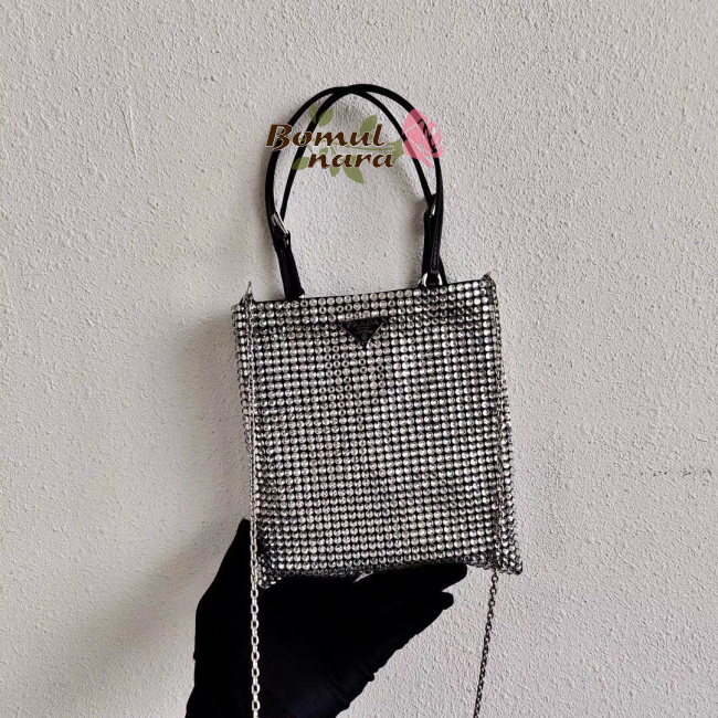 [스페셜오더]PRADA-1BA253 프라다 실버 크리스탈 실크 새틴 미니 토트백