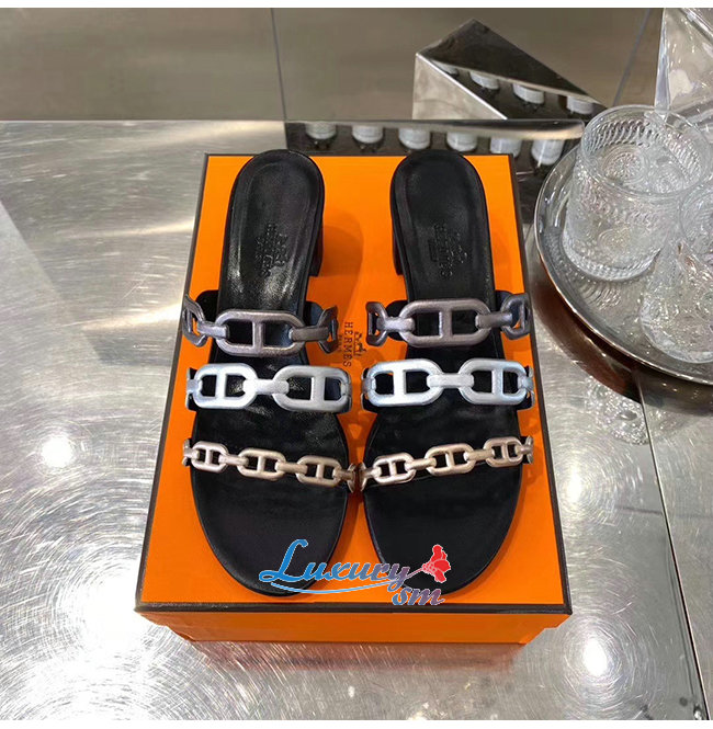 HERMES-H192146Z 에르메스 블랙 나파 가죽 Tandem 샌들
