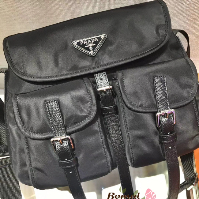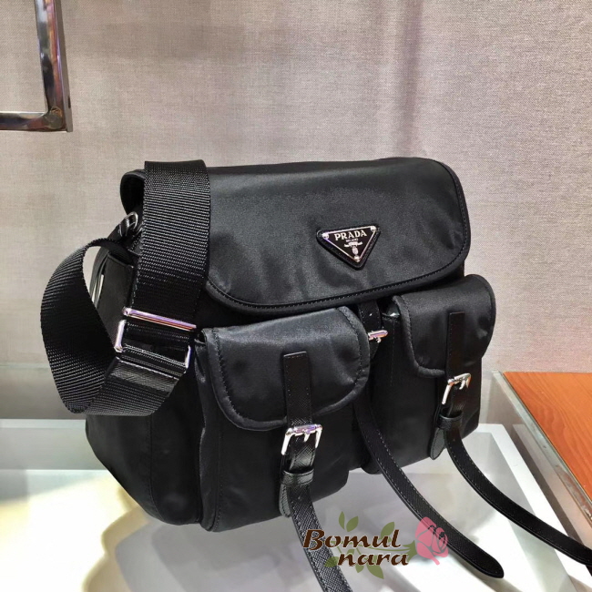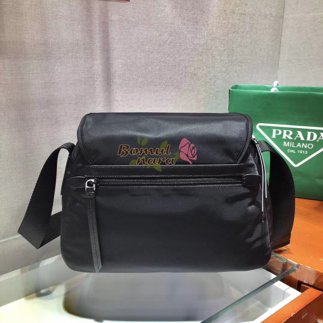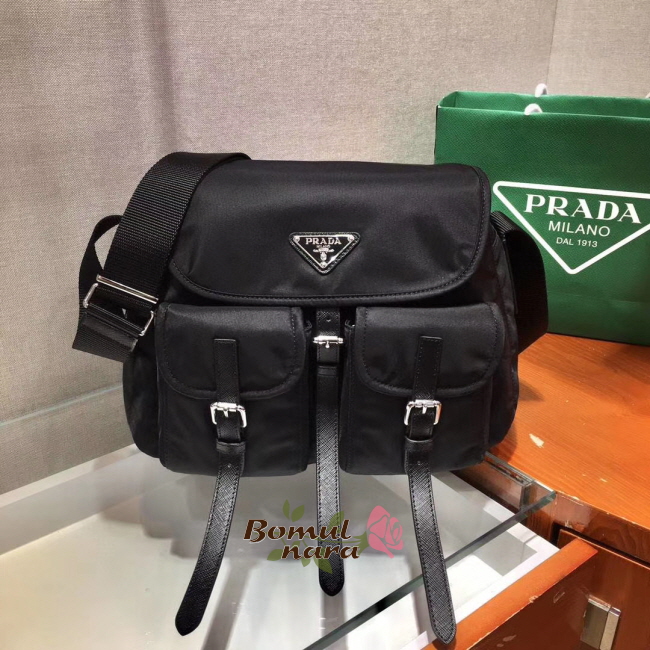[스페셜오더]PRADA-1BD225 프라다 블랙 사피아노 가죽 트리밍 나일론 숄더백