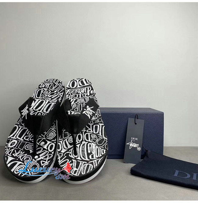 DIOR-3SA086 디올 블랙 DIOR AND SHAWN 자수 나일론 플립플롭 남성용