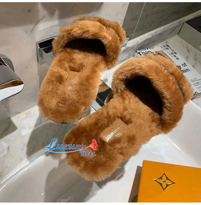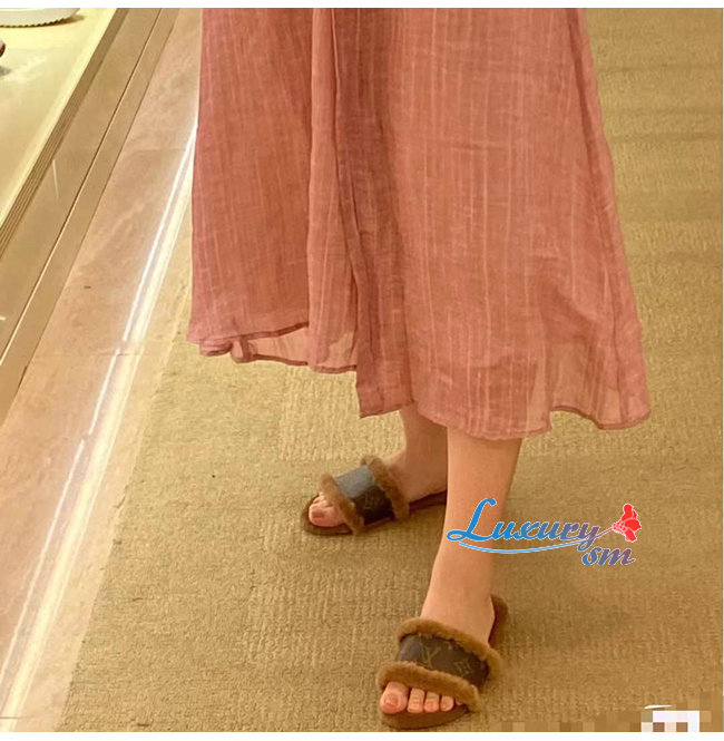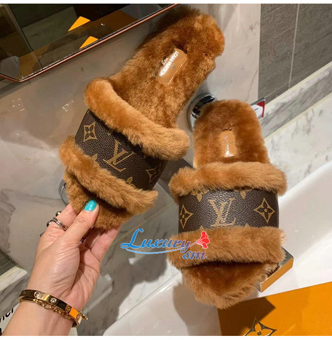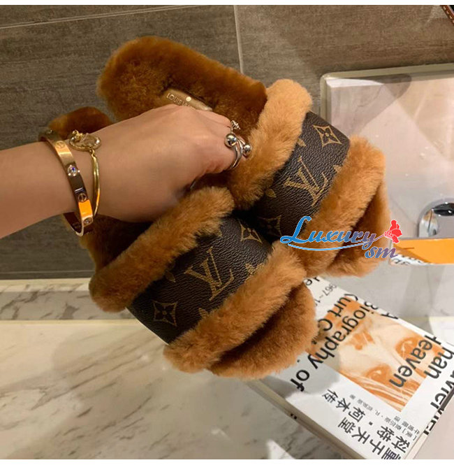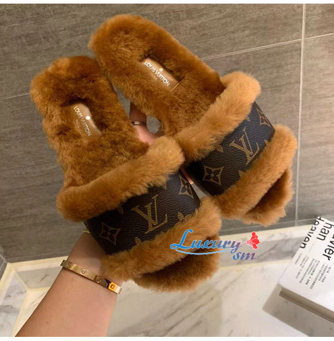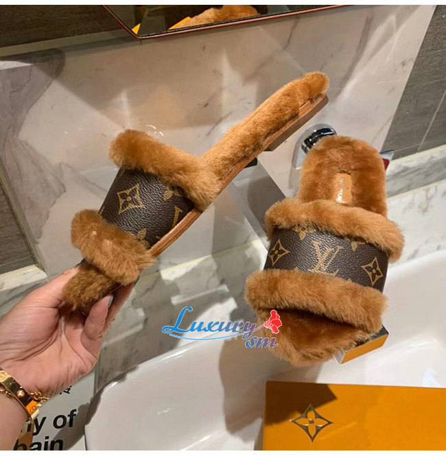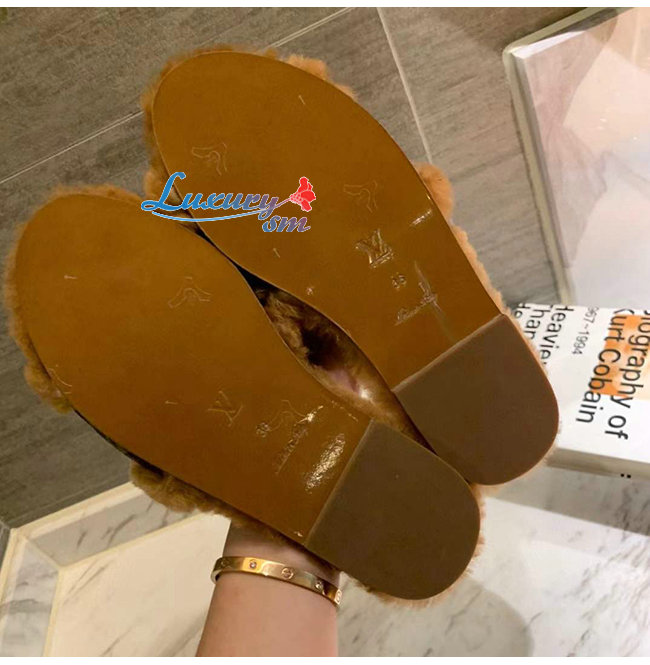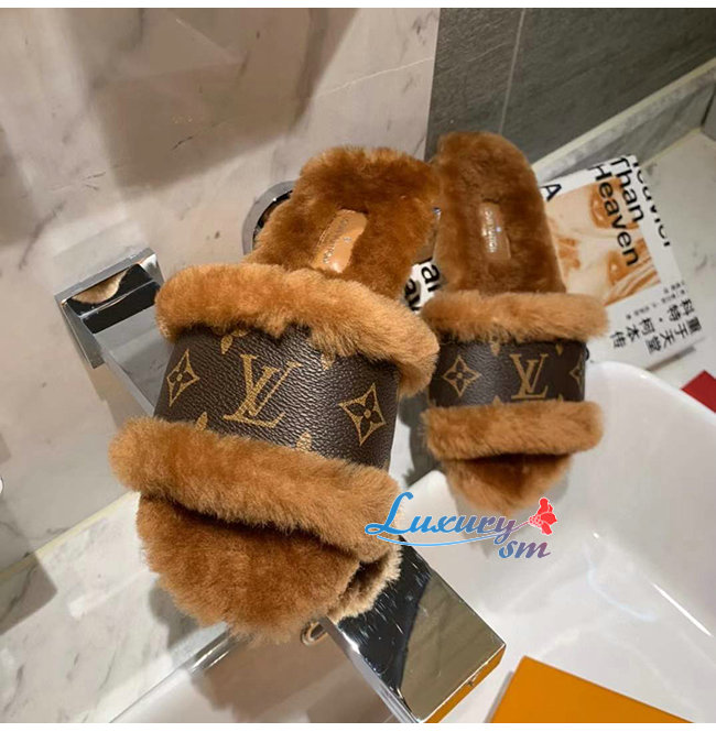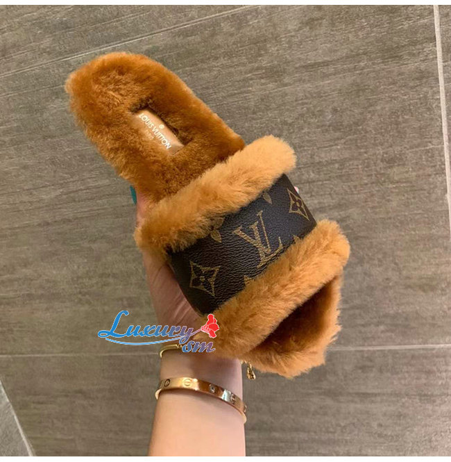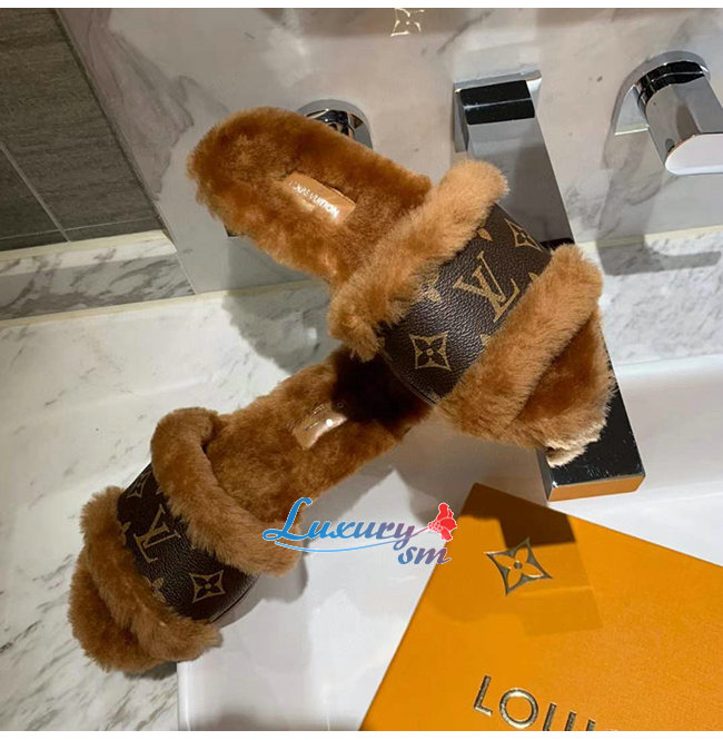 LOUIS VUITTON-1A876J 루이비통 브라운 밍크 퍼 모노그램 디테일 락 잇 플랫 뮬
