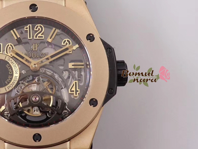 [스페셜오더]HUBLOT-위블로 빅뱅 투르비용 5데이 파워리저브 인디케이터 매직골드 시계 45mm