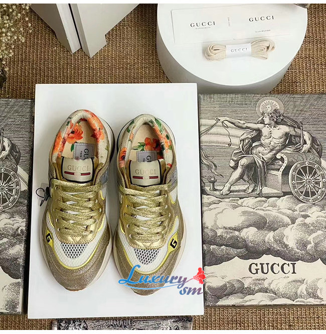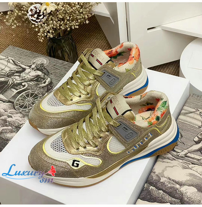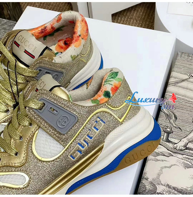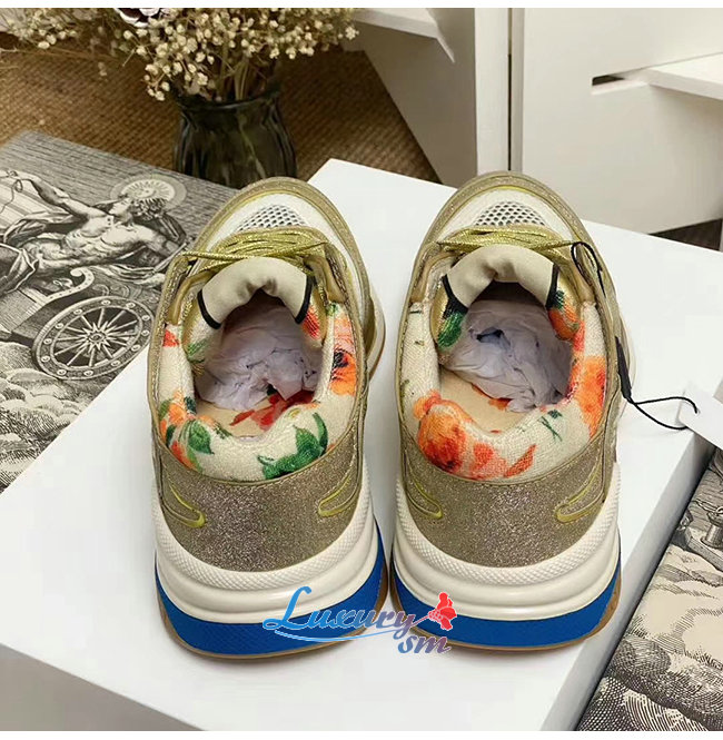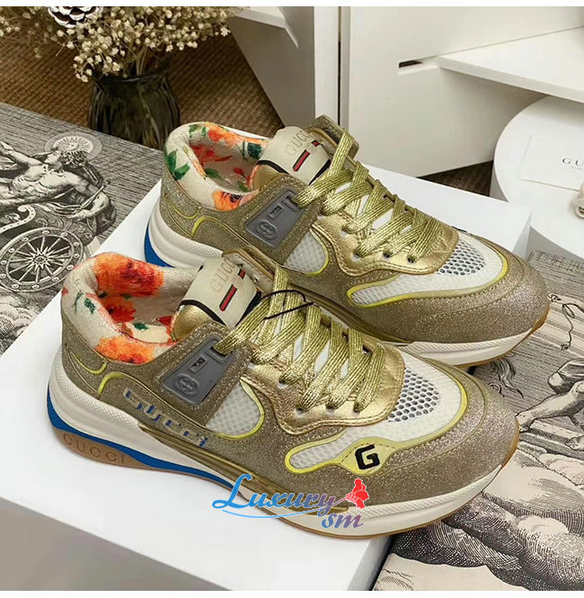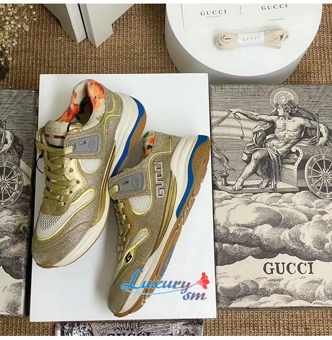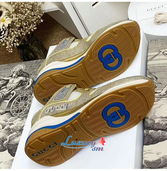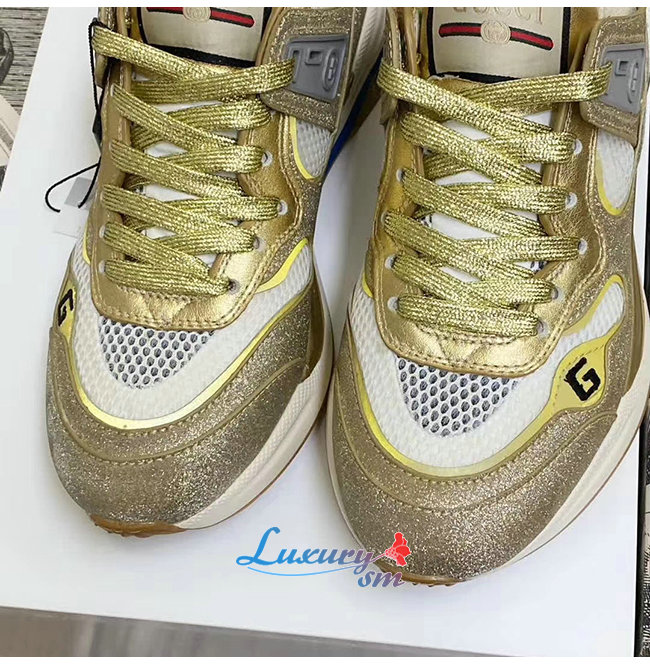 GUCCI-602228 8060 구찌 골드 스파클링 패브릭 메시 울트라페이스 스니커즈 남여공용