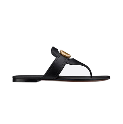 DIOR-KCQ386 디올 블랙 송아지 가죽 30 MONTAIGNE 플랫 플립플랍 여성용