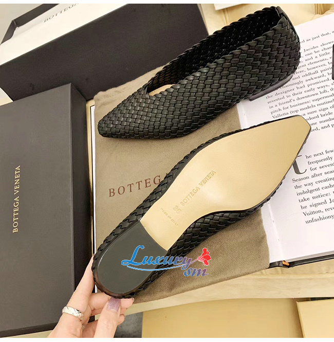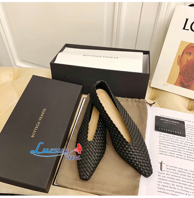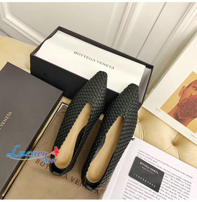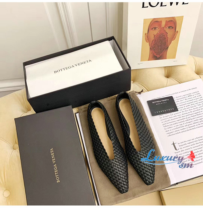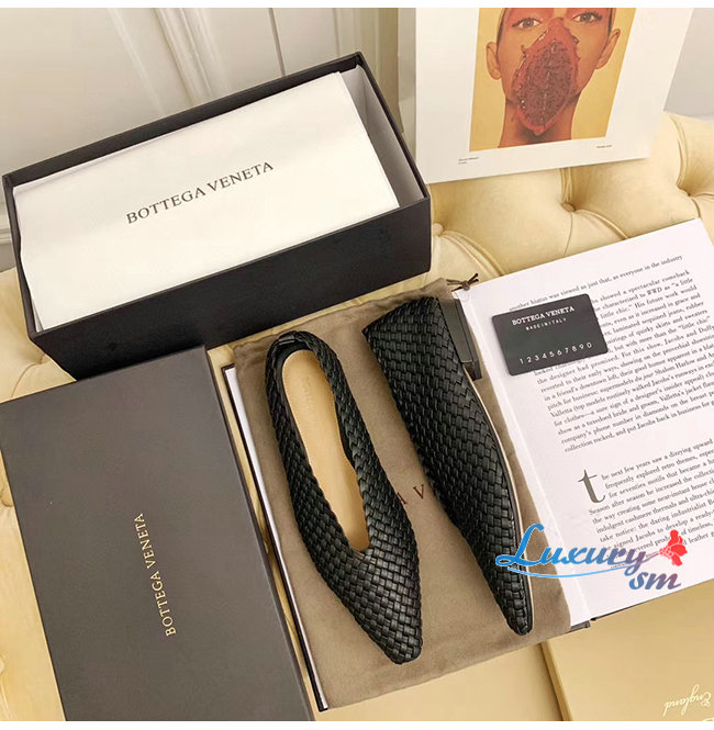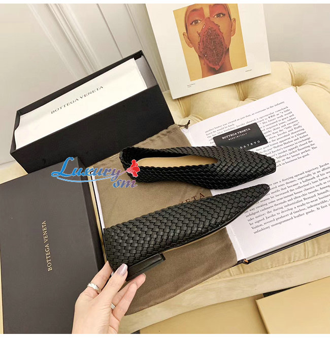 아몬드 형태의 토를 갖춘 우븐 가죽 플랫 놀라울 정도로
