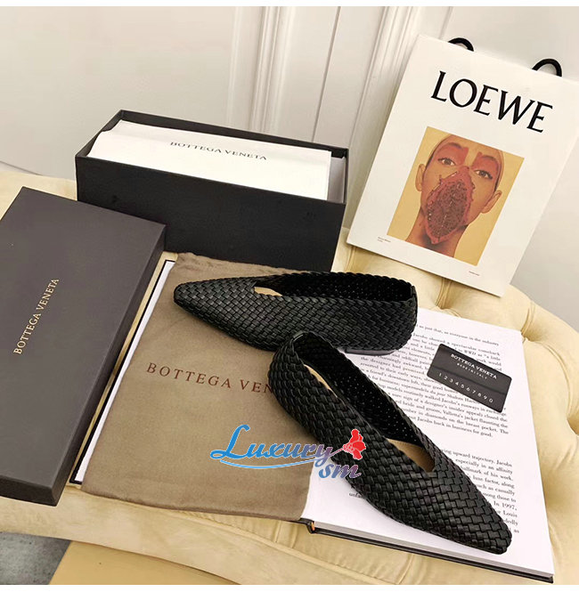 BOTTEGA VENETA-608875 보테가 베네타 네로 양가죽 아몬드 플랫