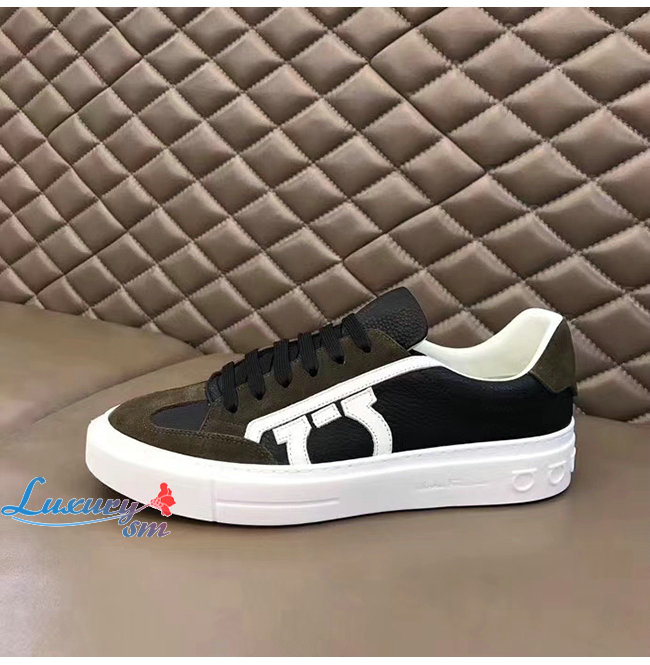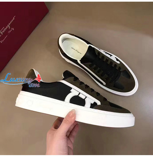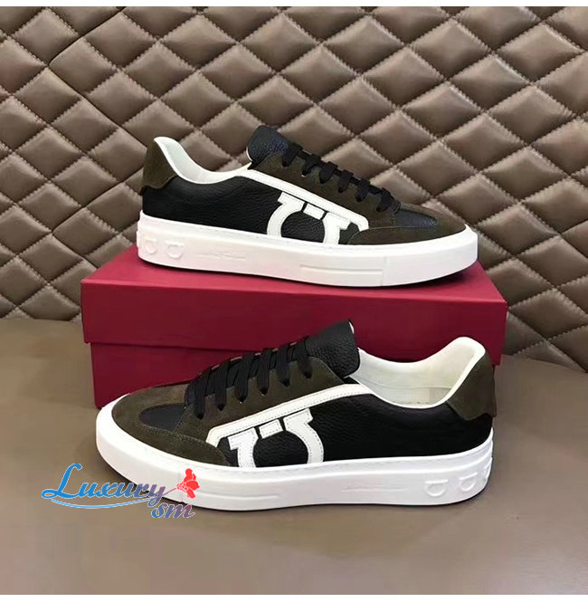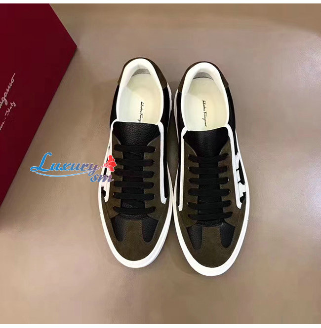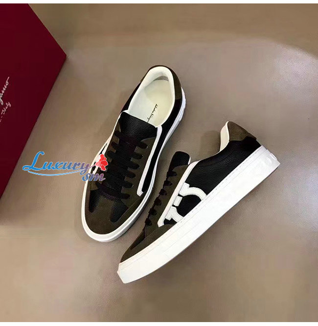 Ferragamo-02C613 페라가모 블랙/카키 보그 간치니 스니커즈