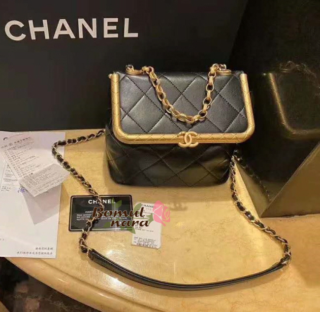 [스페셜오더]CHANEL-AS1885 샤넬 블랙 램스킨 골드 메탈 스몰 키스락 백