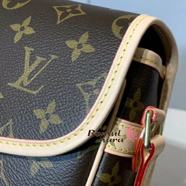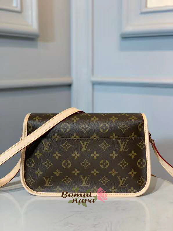 모노그램 패턴과 가방 뒷면 플랩 아래쪽에 부착된 2개