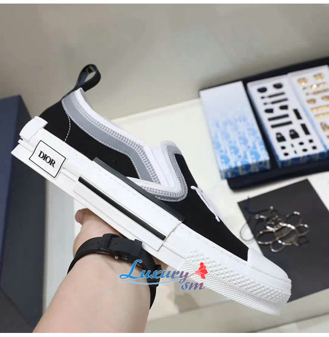 DIOR-3SN262 디올 블랙/화이트 Dior Oblique 캔버스 B23 슬립온 스니커즈 남여공용