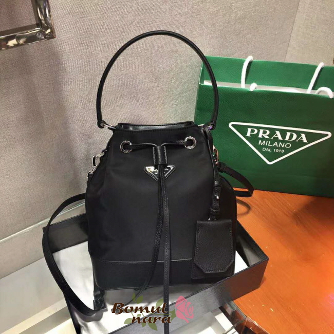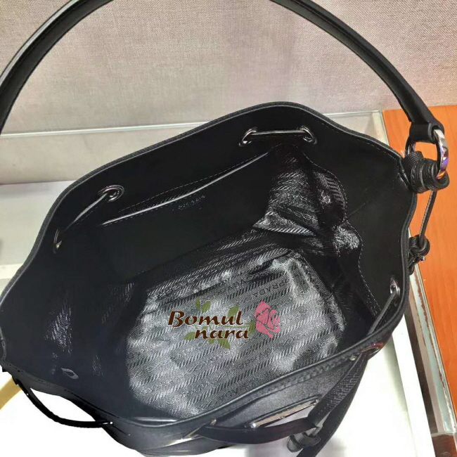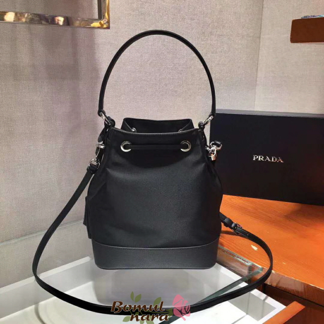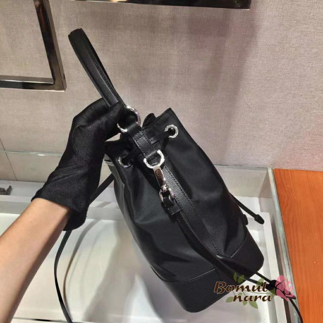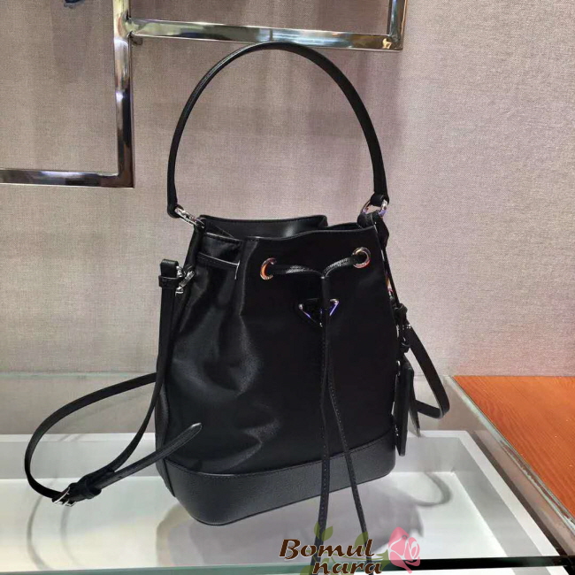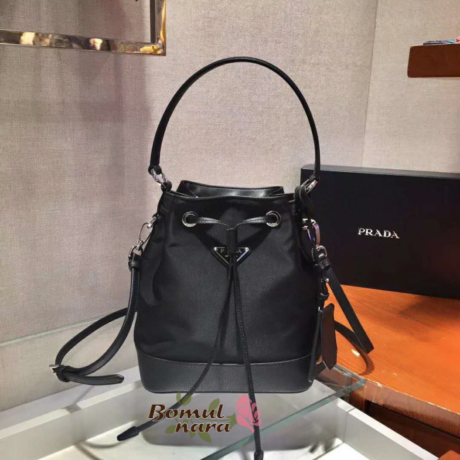 [스페셜오더]PRADA-1BE055 프라다 블랙 나일론 사피아노 가죽 버킷 백