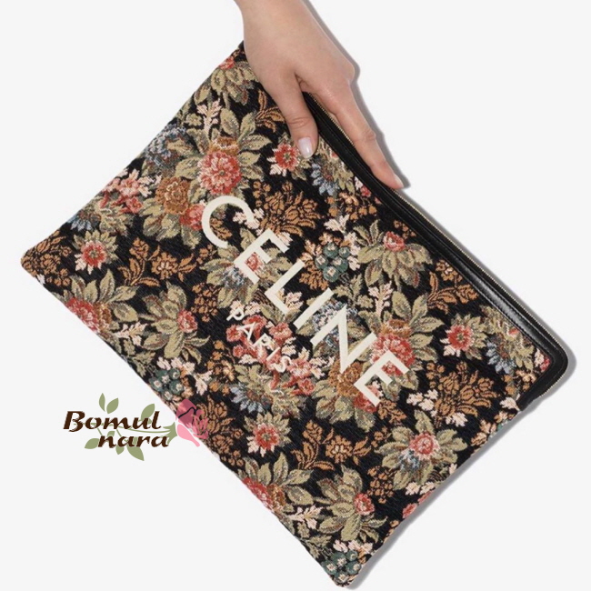 [스페셜오더]CELINE-10D672 셀린느 블랙 플로럴 자카드 스몰 파우치