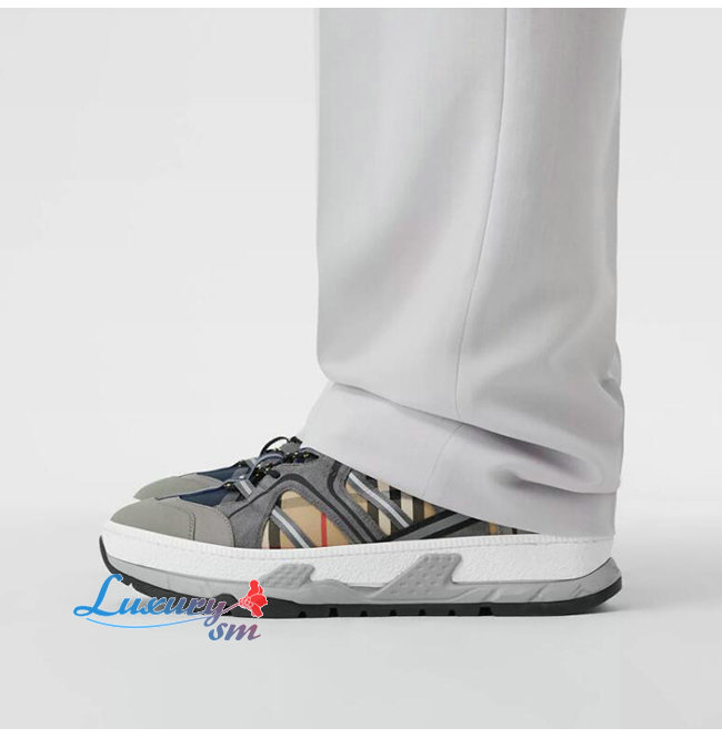 BURBERRY-80311081 버버리 베이지/그레이 빈티지 체크 코튼 스웨이드 유니언 스니커즈