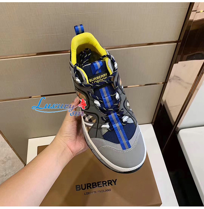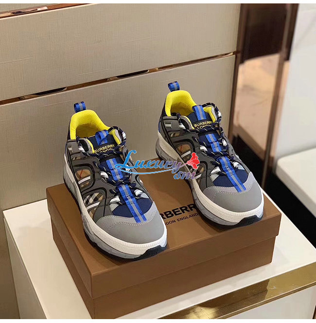 BURBERRY-80240451 버버리 네이비 레더 메시 유니언 스니커즈