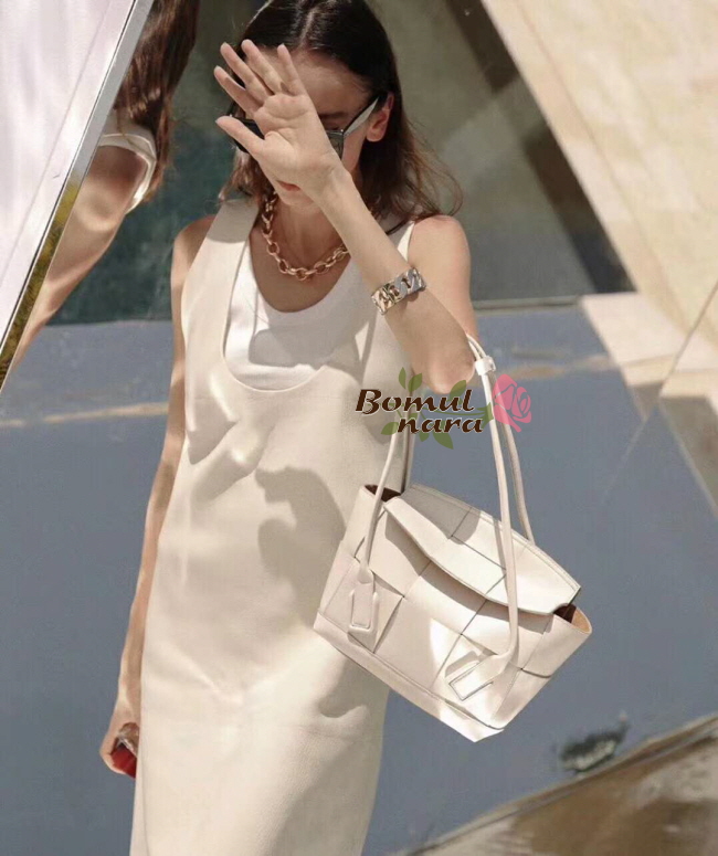 [스페셜오더]BOTTEGA VENETA-575943 보테가 베네타 우드 인트레치아토 패턴 스몰 아르코 33 탑 핸들백