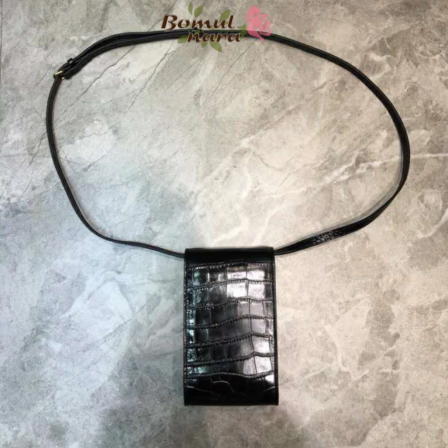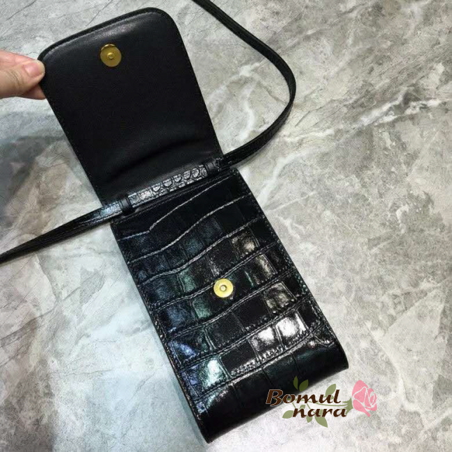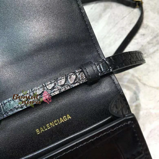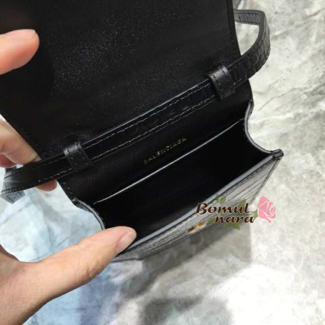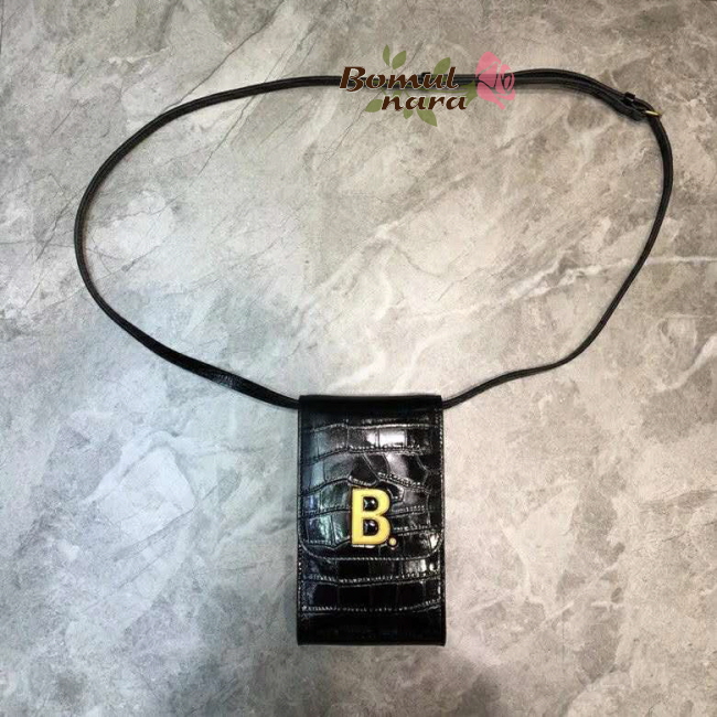 [스페셜오더]BALENCIAGA-6002011 발렌시아가 블랙 크로커다일 엠보스트 도트 로고 B 폰 홀더