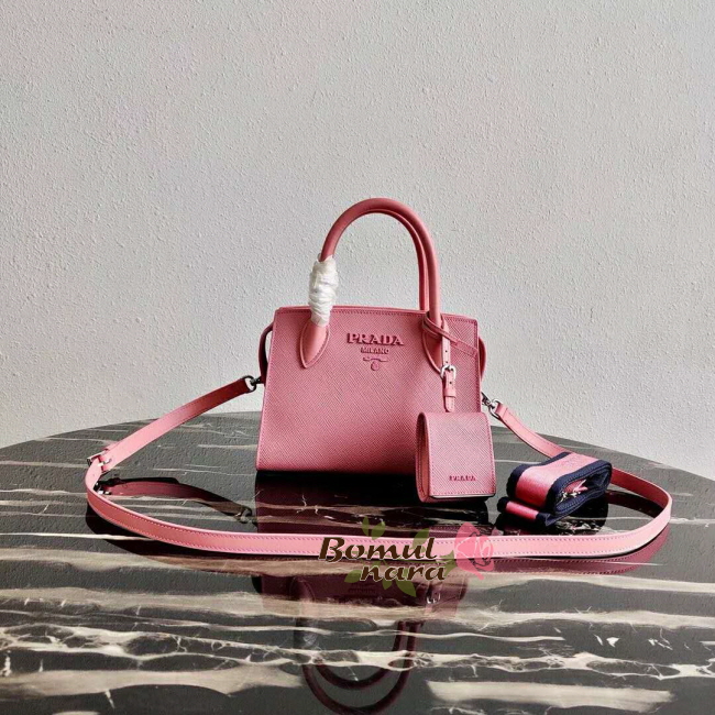 [스페셜오더]PRADA-1BA269 프라다 페탈 핑크 사피아노 트라이앵글 로고 핸드백 가격 : 450,000원