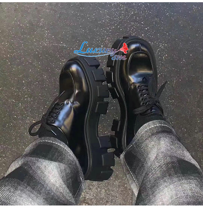 PRADA-1E708L 프라다 블랙 블러시드 가죽 레이스 더비 슈즈