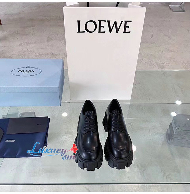 PRADA-1E708L 프라다 블랙 모노라이트 페이턴트 가죽 레이스 더비 슈즈
