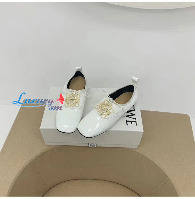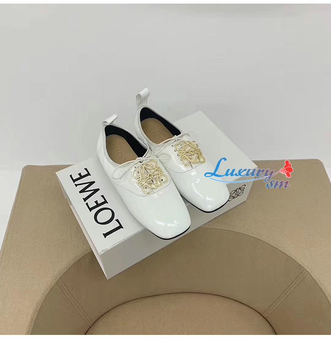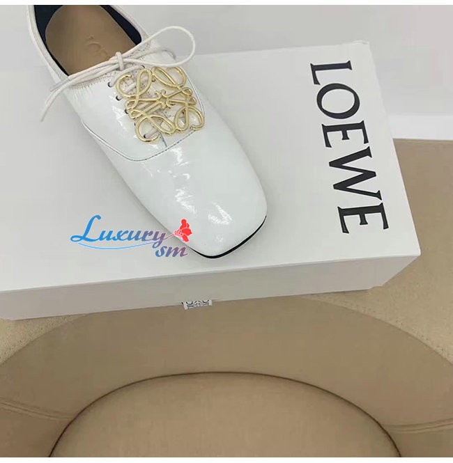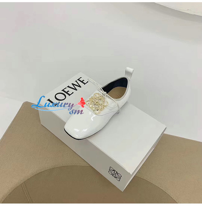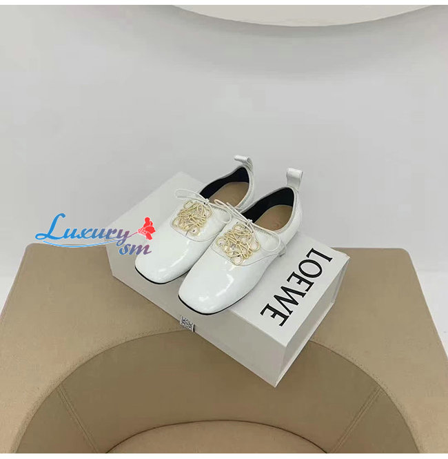 LOEWE-L815S02 로에베 화이트 페이턴트 카프스킨 더비 슈즈 여성용