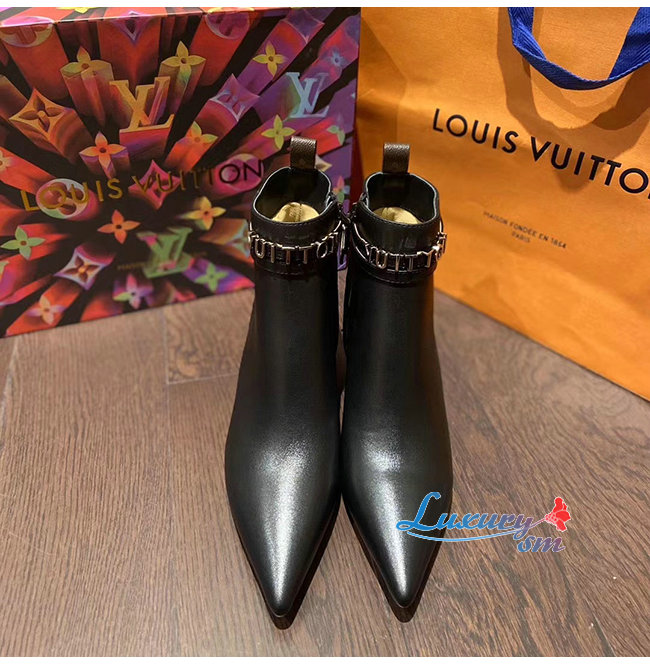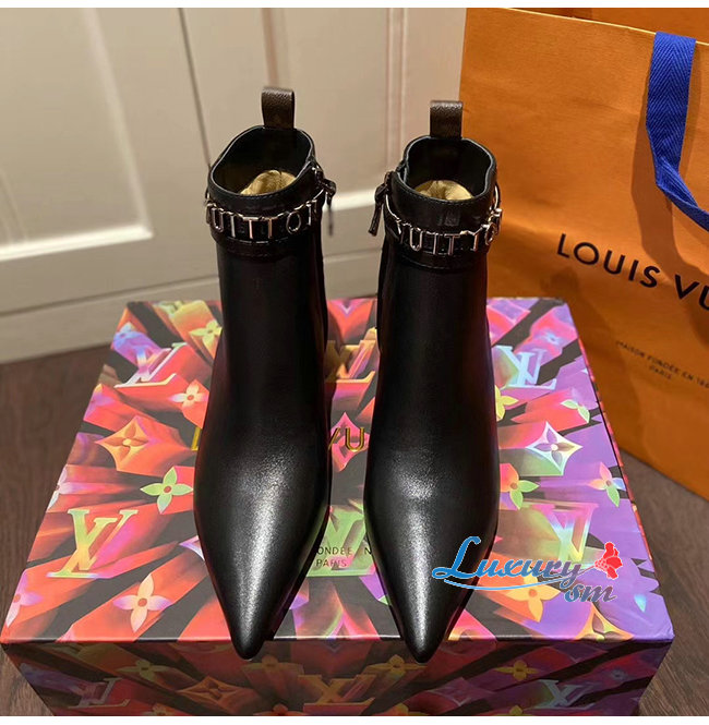 LOUIS VUITTON-1A5LB1 루이비통 블랙 송아지 가죽 콜 백 앵클 부츠