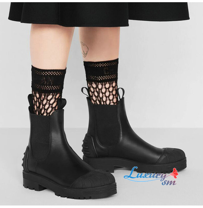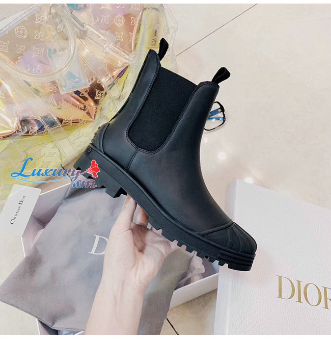 DIOR-KDI646 디올 블랙 송아지 가죽 DIOR IRON 앵클 부츠 여성용