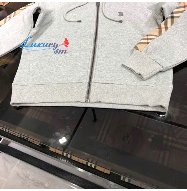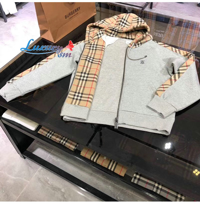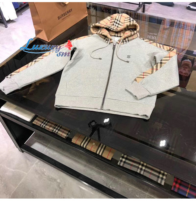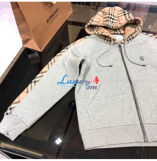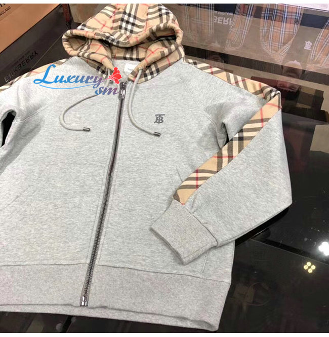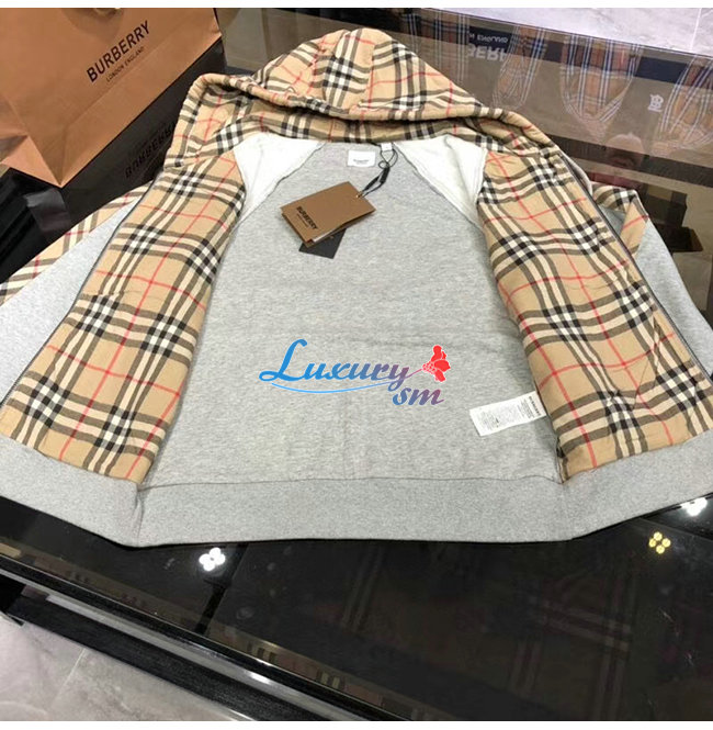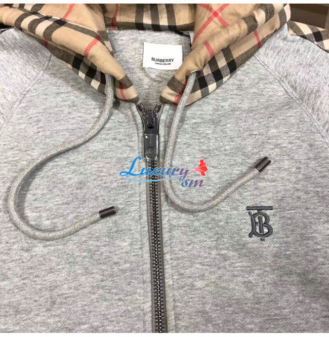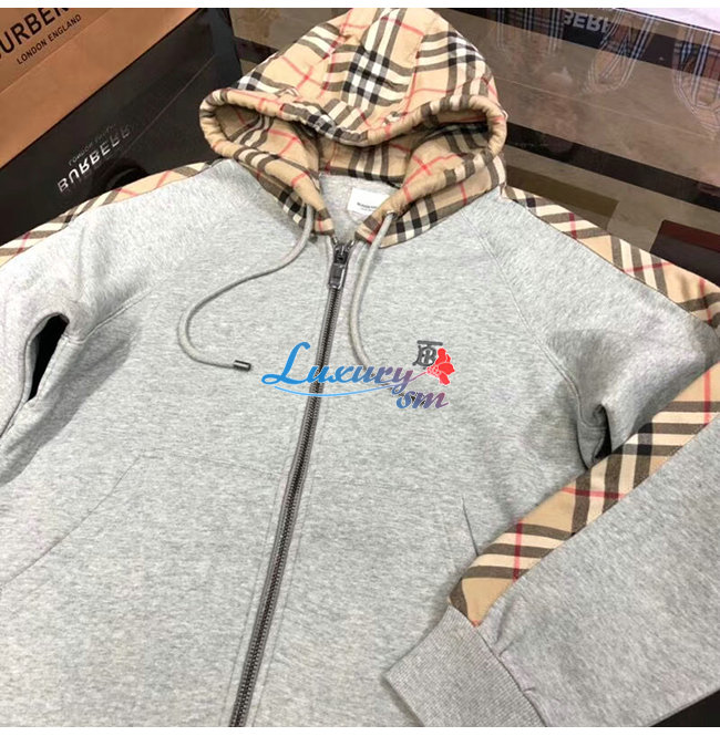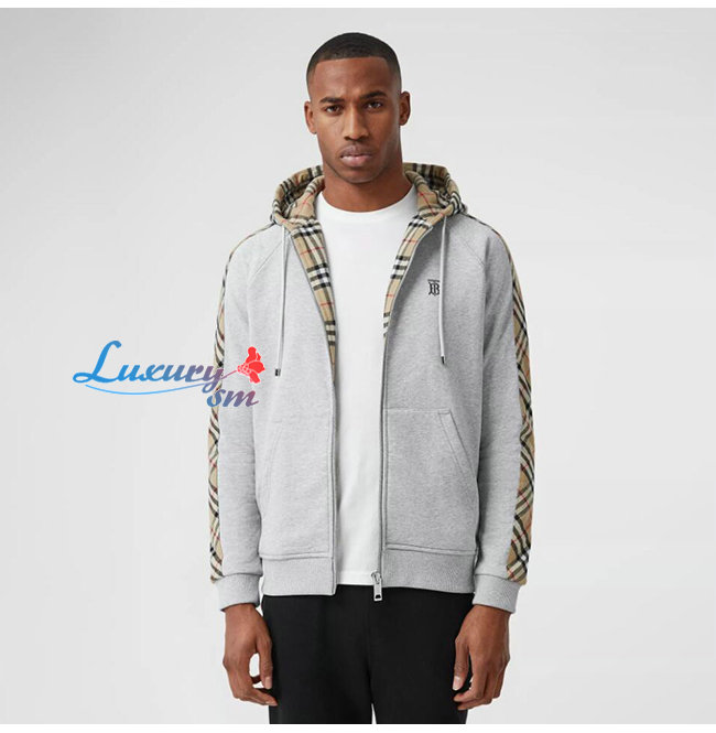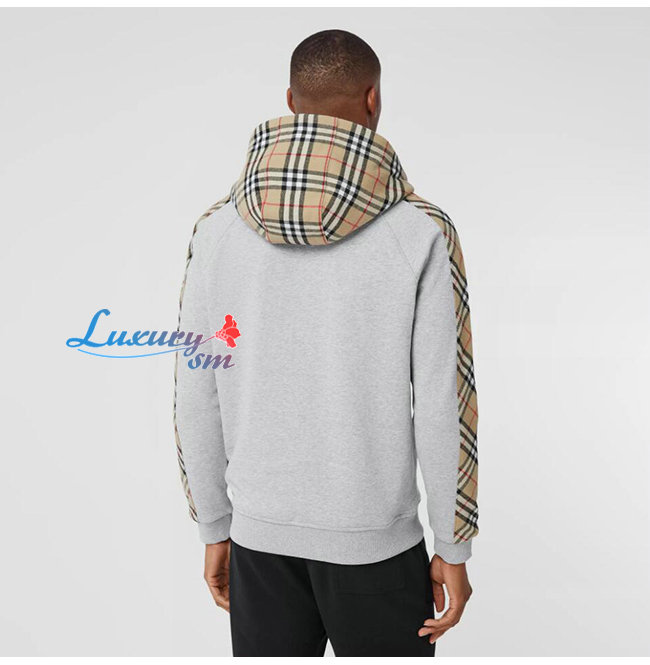 BURBERRY-80134941 버버리 그레이 빈티지 체크 패널 코튼 후드 톱 남여공용