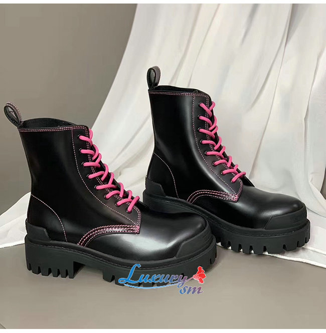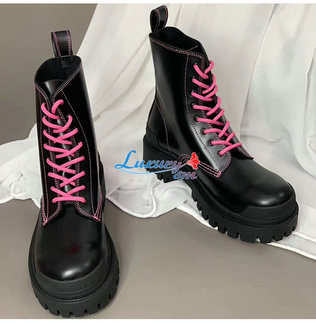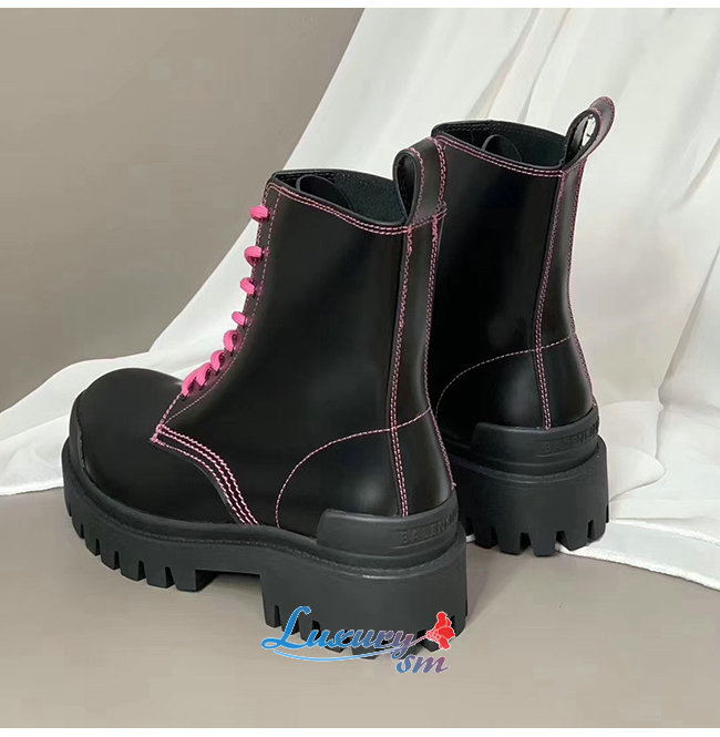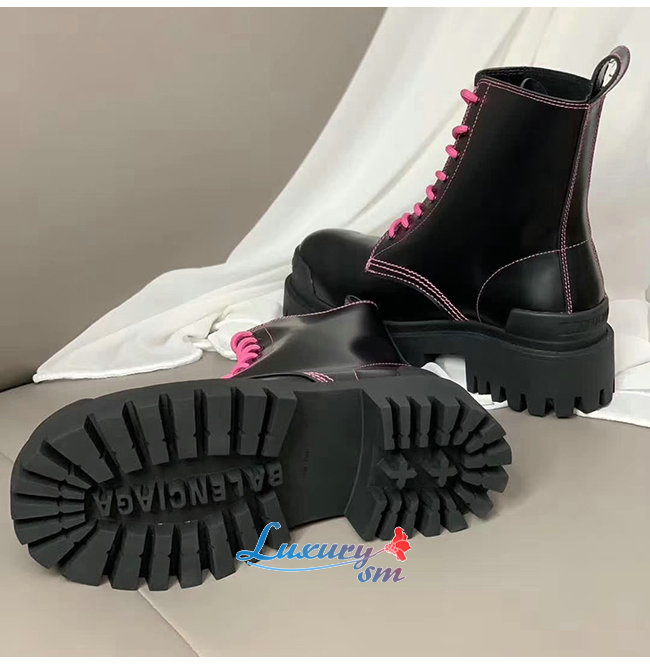 BALENCIAGA-590974 발렌시아가 블랙/핑크 송아지 가죽 스트라이크 레이스업 부츠 여성용