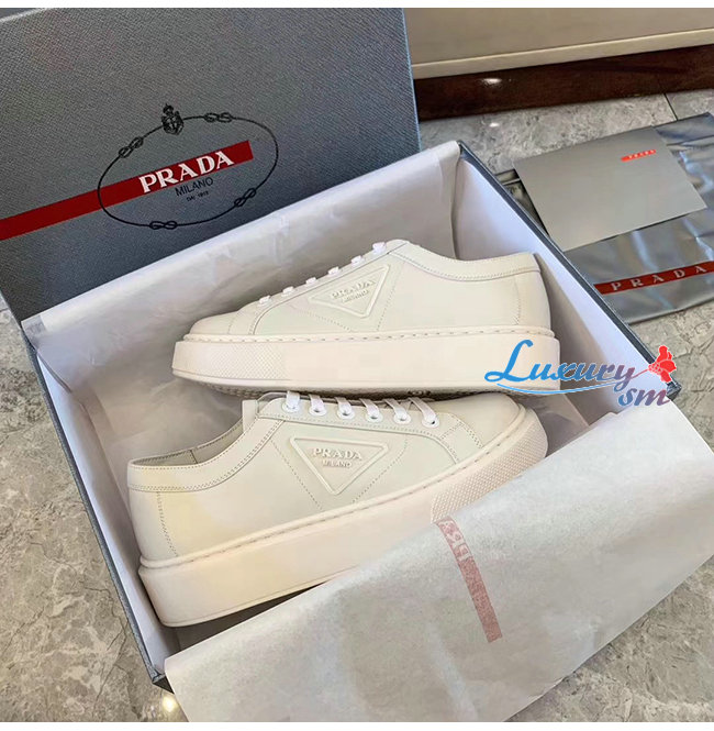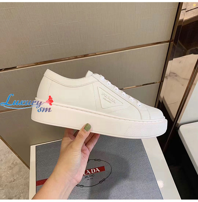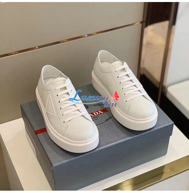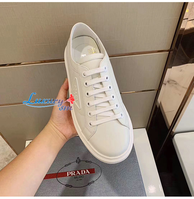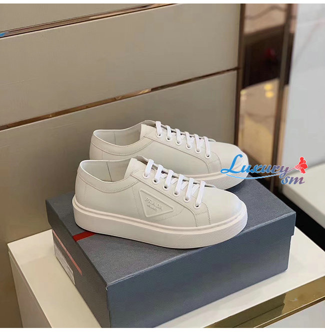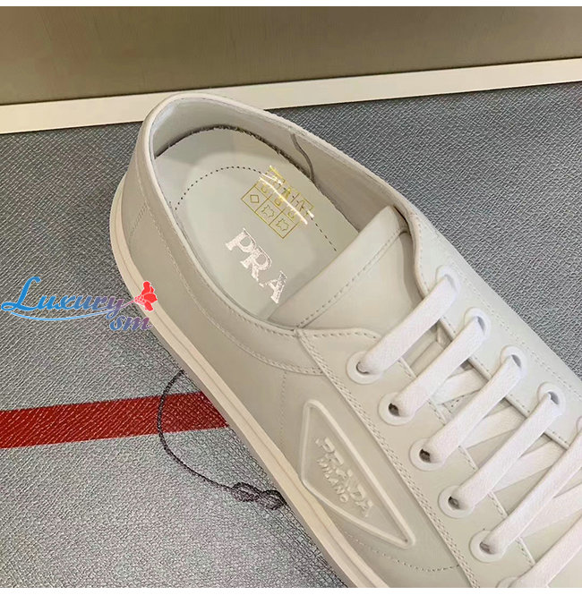 PRADA-4E3560 프라다 화이트 카프스킨 개버딘 스니커즈