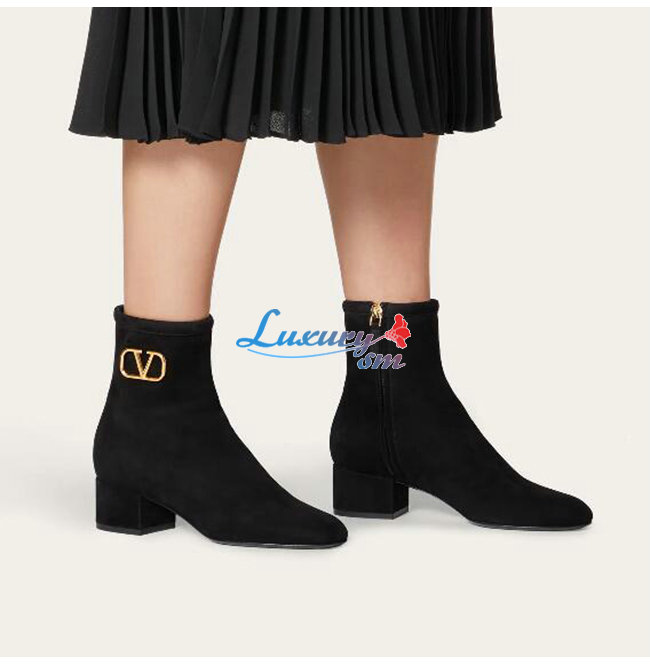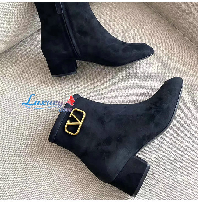 VALENTINO-UW2S0V30 발렌티노 블랙 스웨이드 가죽 VLOGO SIGNATURE 앵클 부츠