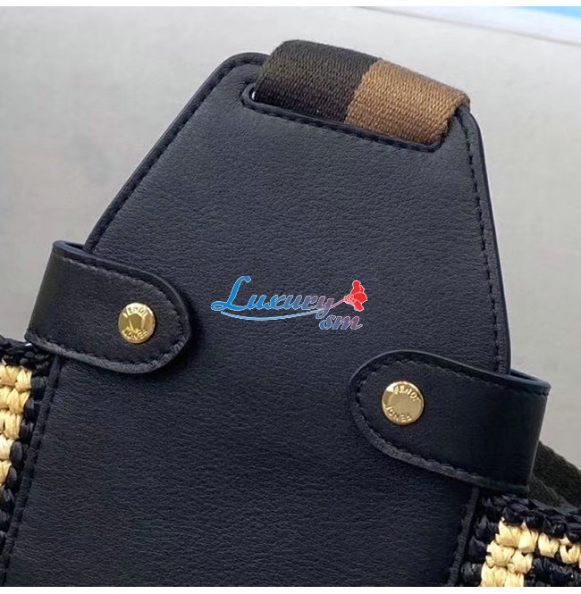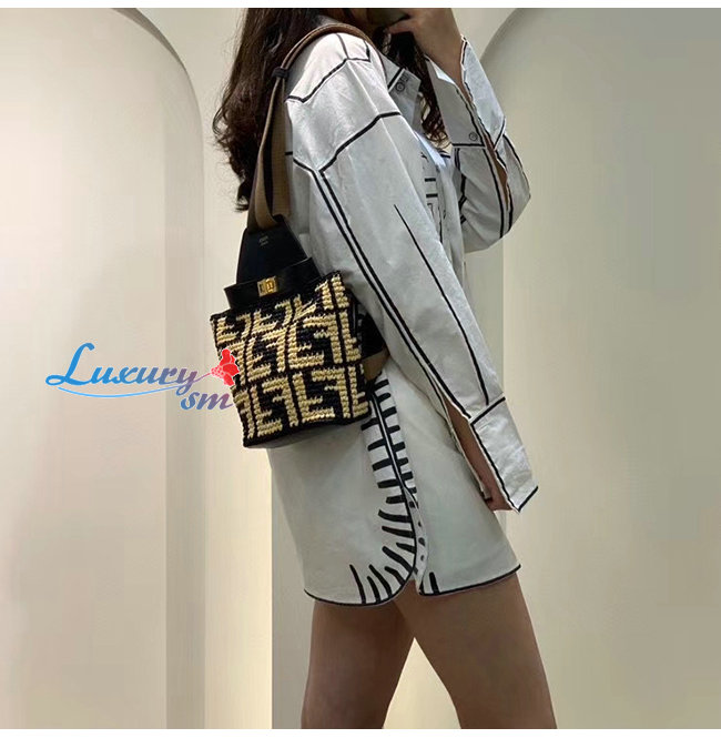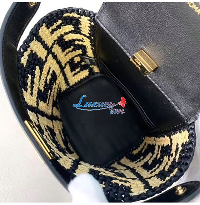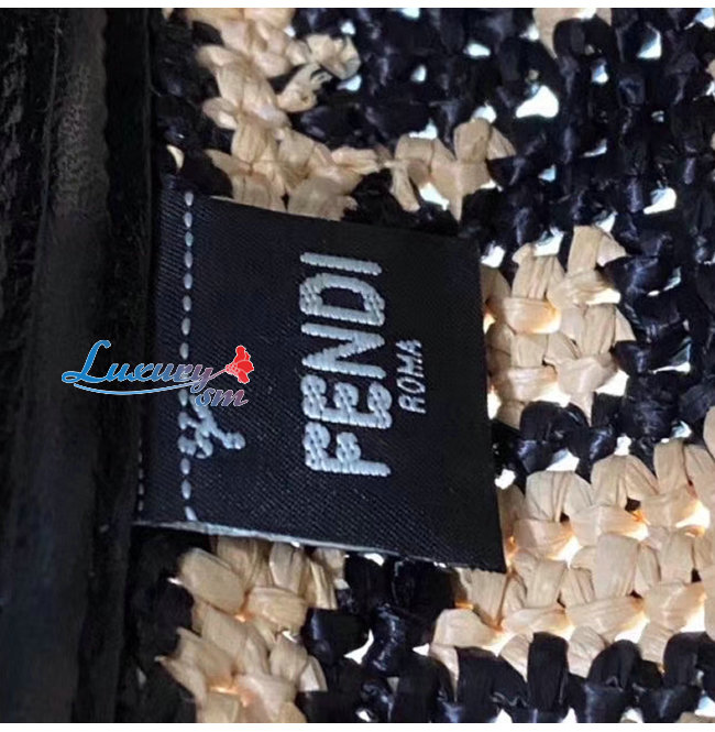 블랙 라피아 소재,베이지로 엮은 FF 모티프 장식,페퀸