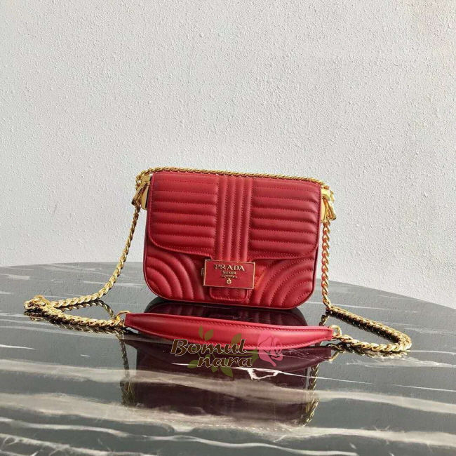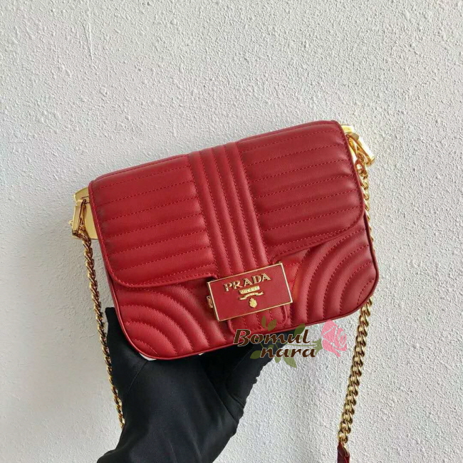 [스페셜오더]PRADA-1BD217 프라다 파이어 엔진 레드 스티치 장식 숄더백