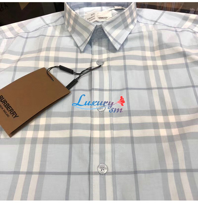 BURBERRY-80258491 버버리 더스티 블루벨 체크 코튼 포플린 셔츠