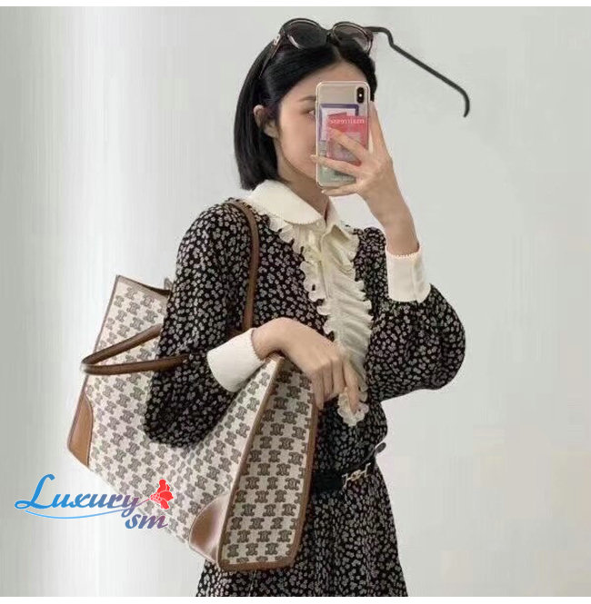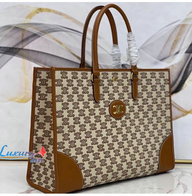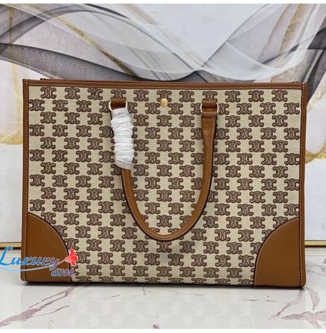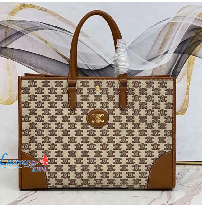 [스페셜오더]CELINE-194342 셀린느 브라운 트리오페 자수 호리즌탈 카바스 토트백