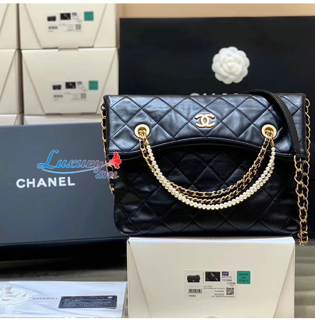[스페셜오더]CHANEL-AS2213 샤넬 블랙 카프스킨 크리스탈 펄 골드메탈 쇼핑백