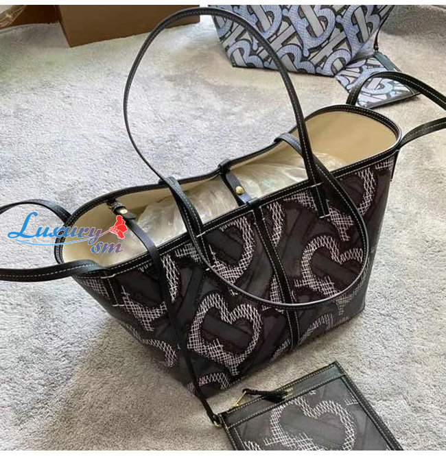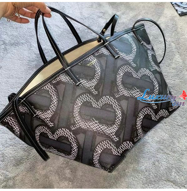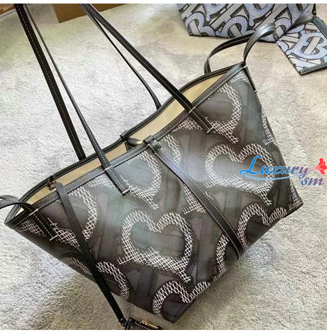[스페셜오더]BURBERRY-80326621 버버리 그라파이트 미니 모노그램 프린트 E-캔버스 비치 토트