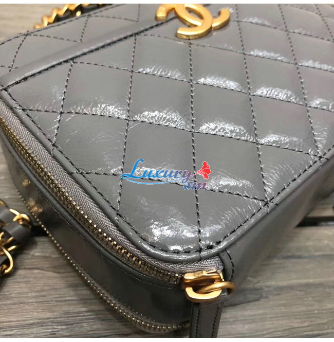 [스페셜오더]CHANEL-AS2179 샤넬 그레이 유광 크럼플드 카프스킨 골드메탈 코스메틱 케이스