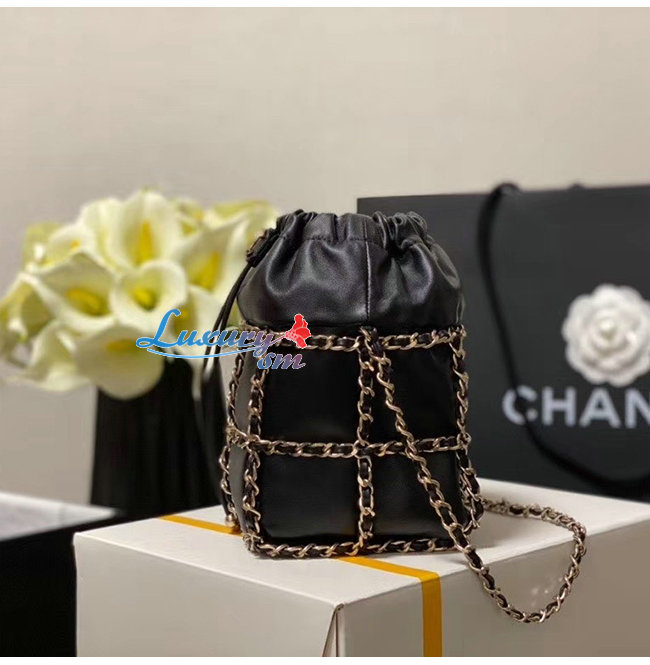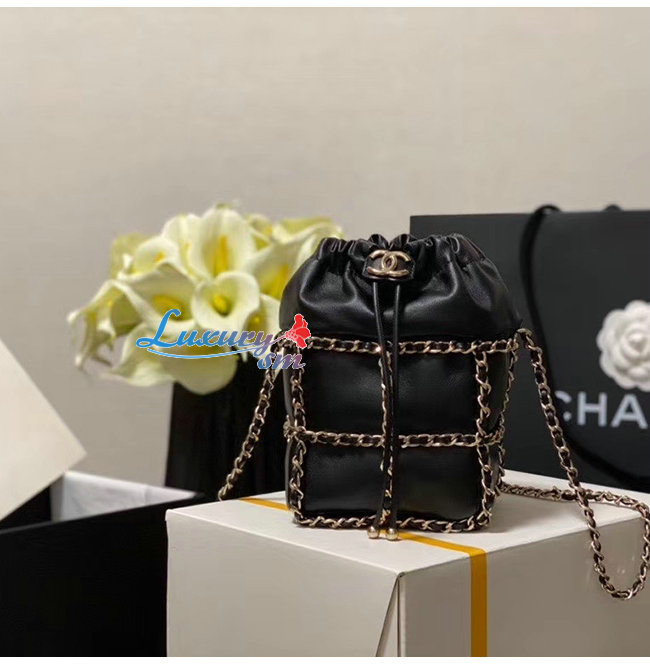 [스페셜오더]CHANEL-AS2314 샤넬 블랙 램스킨 골드메탈 드로스트링 핸드백