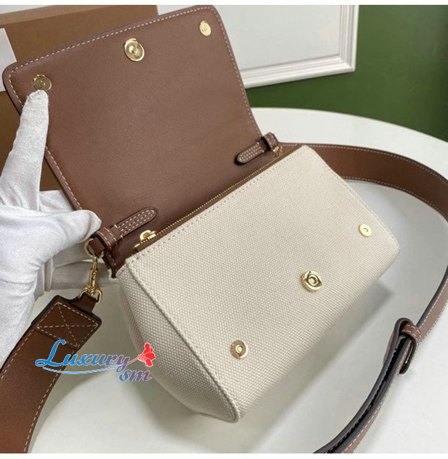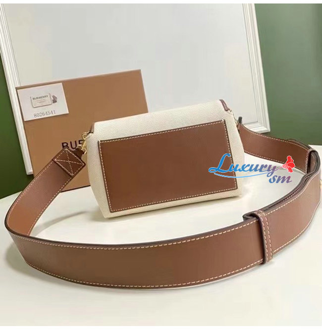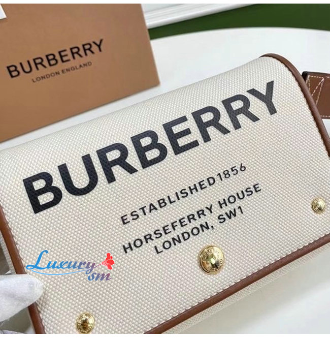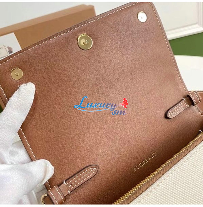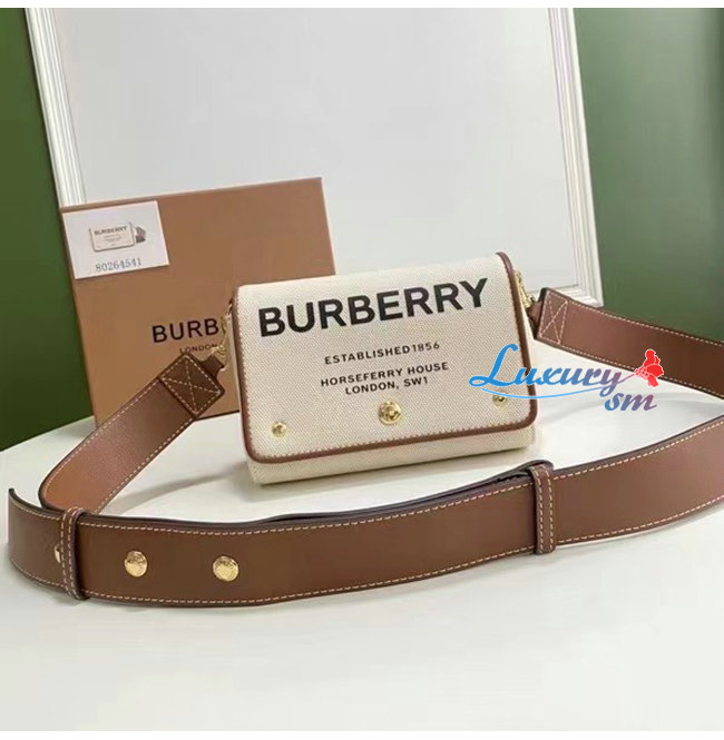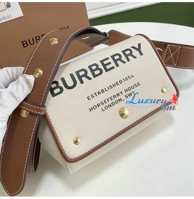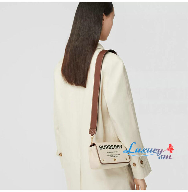 [스페셜오더]BURBERRY-80266081 버버리 화이트/탠 스몰 호스페리 프린트 코튼 캔버스 크로스바디 백
