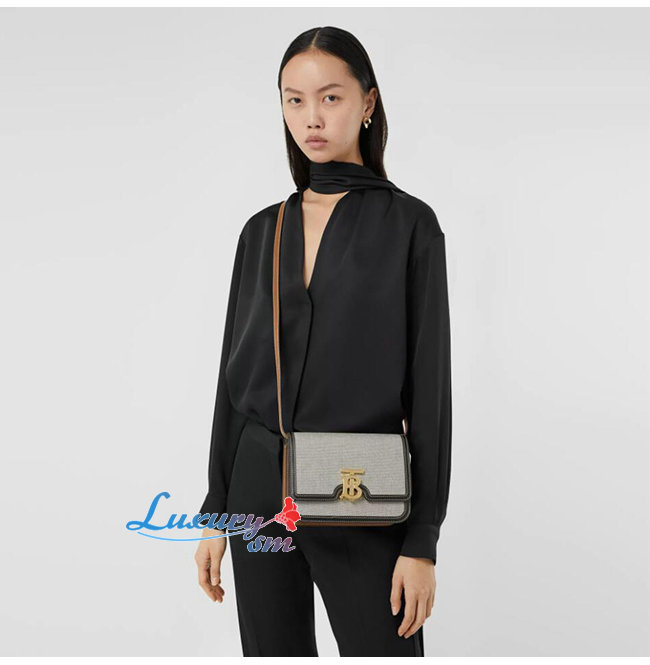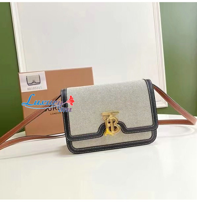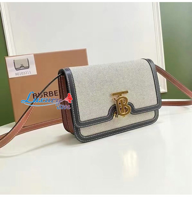 [스페셜오더]BURBERRY-80146401 버버리 투톤 캔버스 가죽 스몰 TB 백