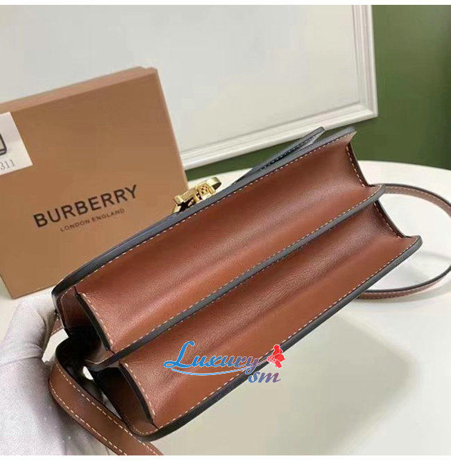 [스페셜오더]BURBERRY-80115751 버버리 라이트 카멜 블랙 송아지 가죽 스몰 TB 백