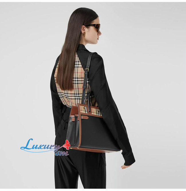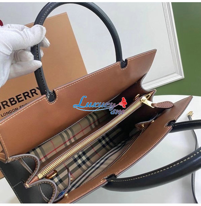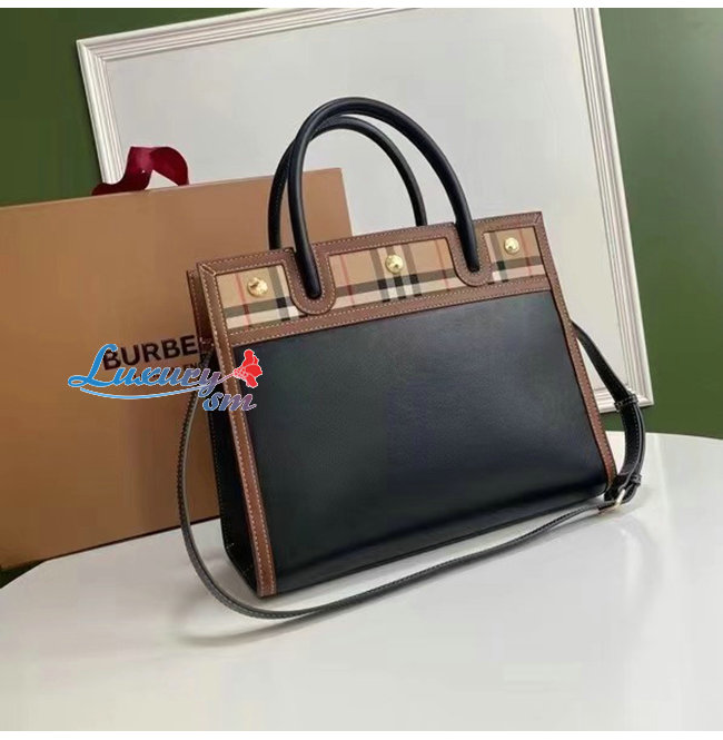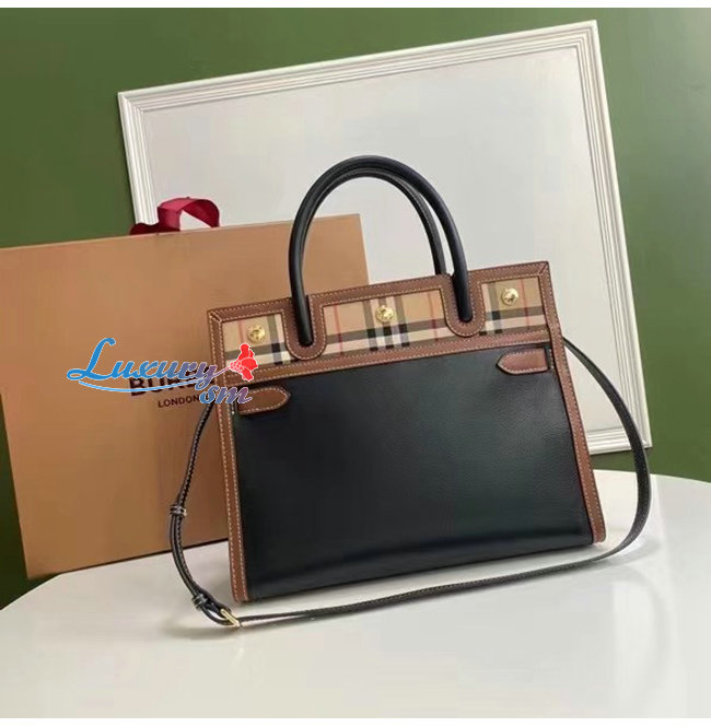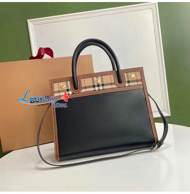 [스페셜오더]BURBERRY-80252691 버버리 블랙 스몰 레더 빈티지 체크 투 핸들 타이틀 백