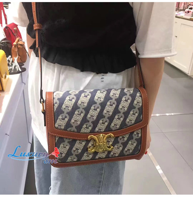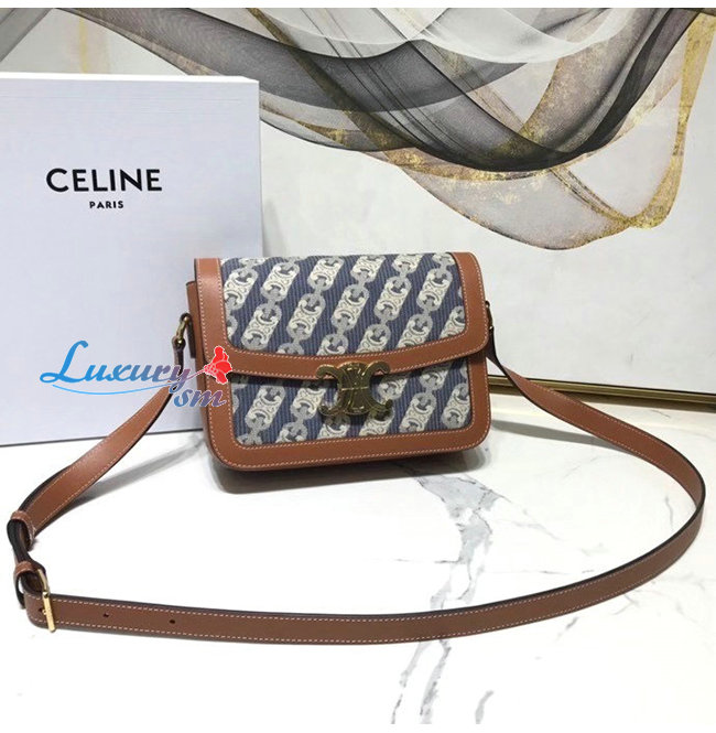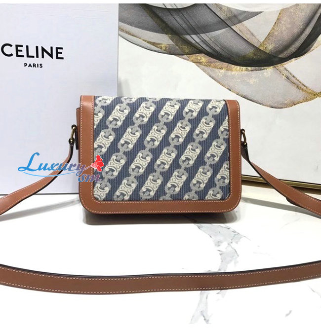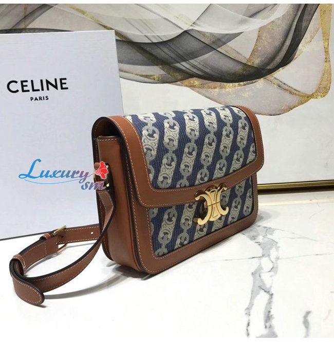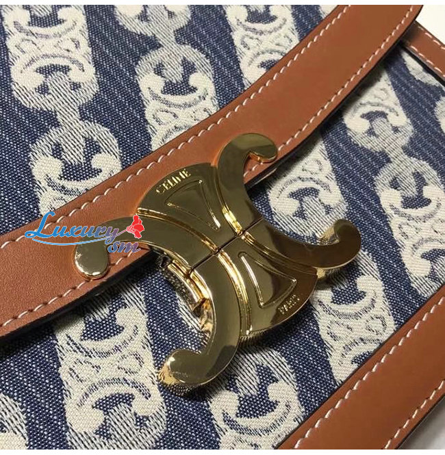 [스페셜오더]CELINE-191242 셀린느 네이비/탠 자카드 미디엄 트리오페 백