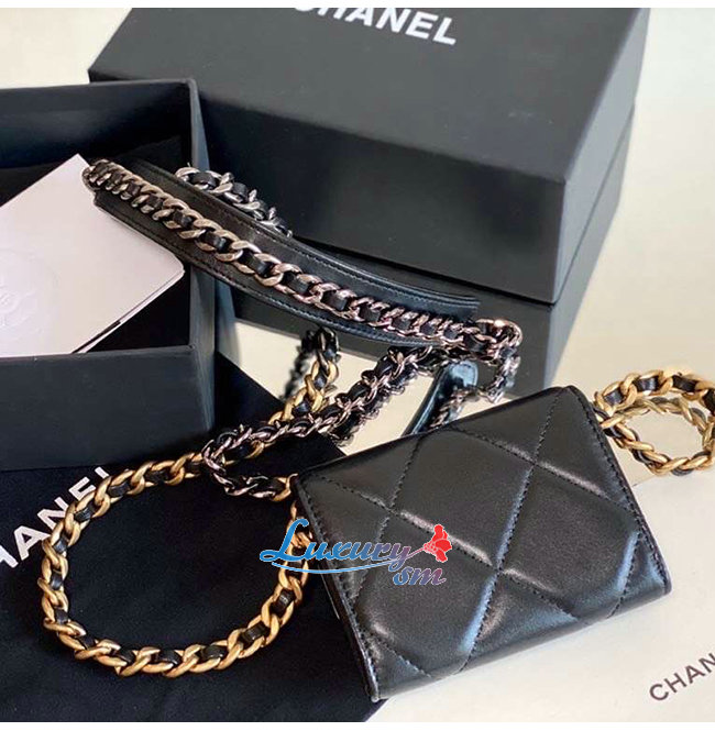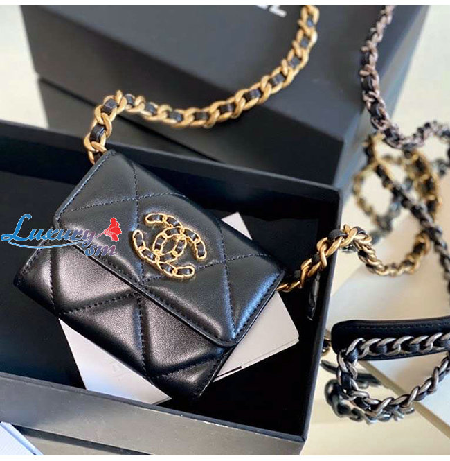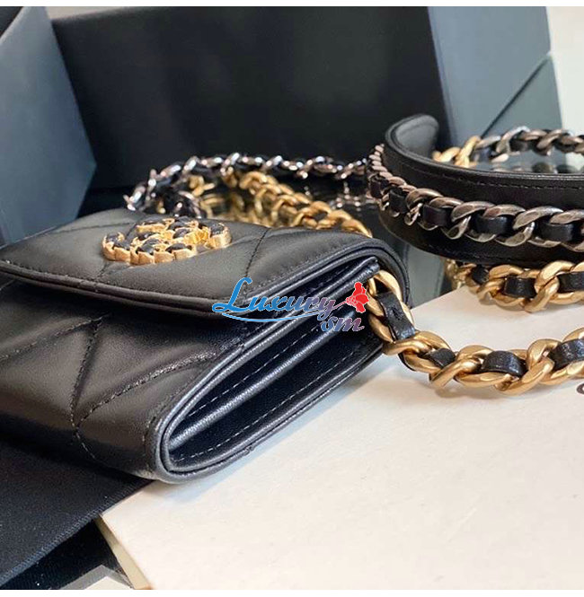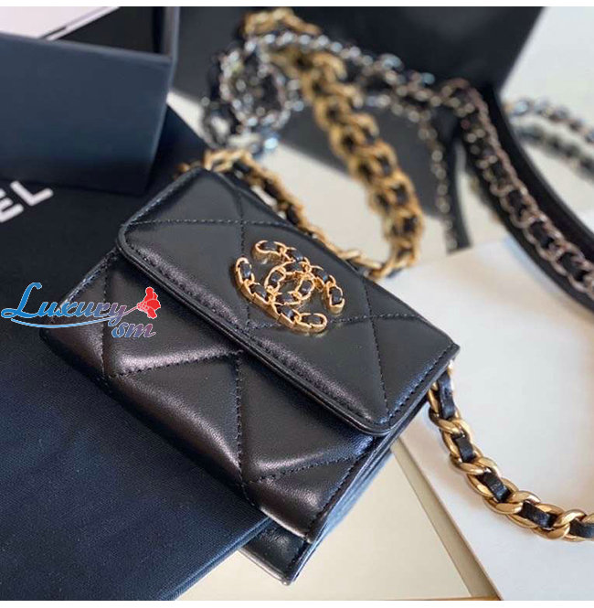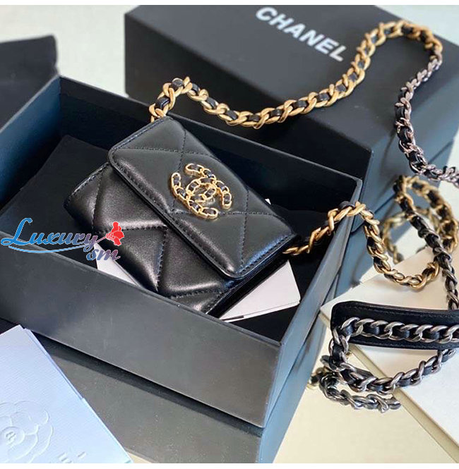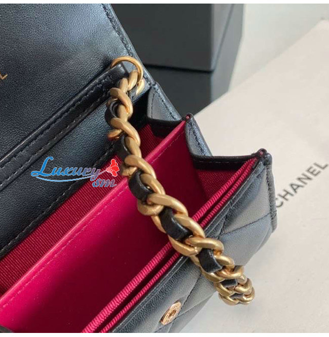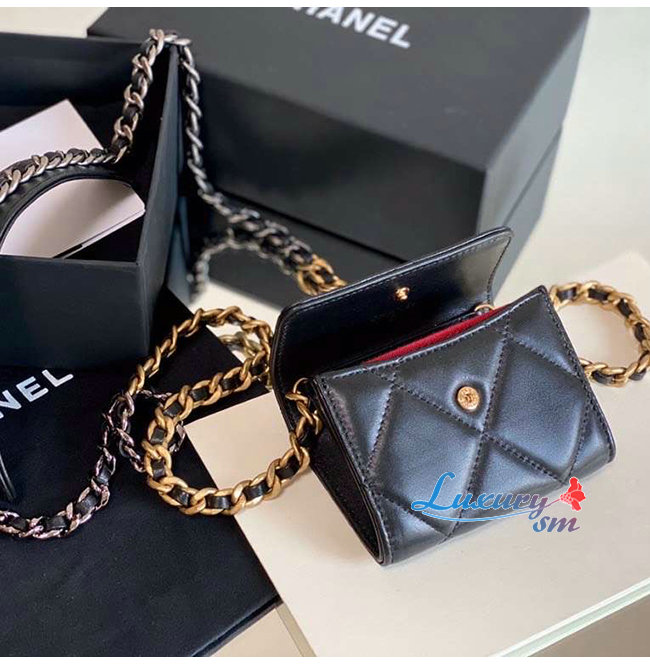 [스페셜오더]CHANEL-AP1787 샤넬 블랙 램스킨 CHANEL 19 플랩 체인 동전 지갑