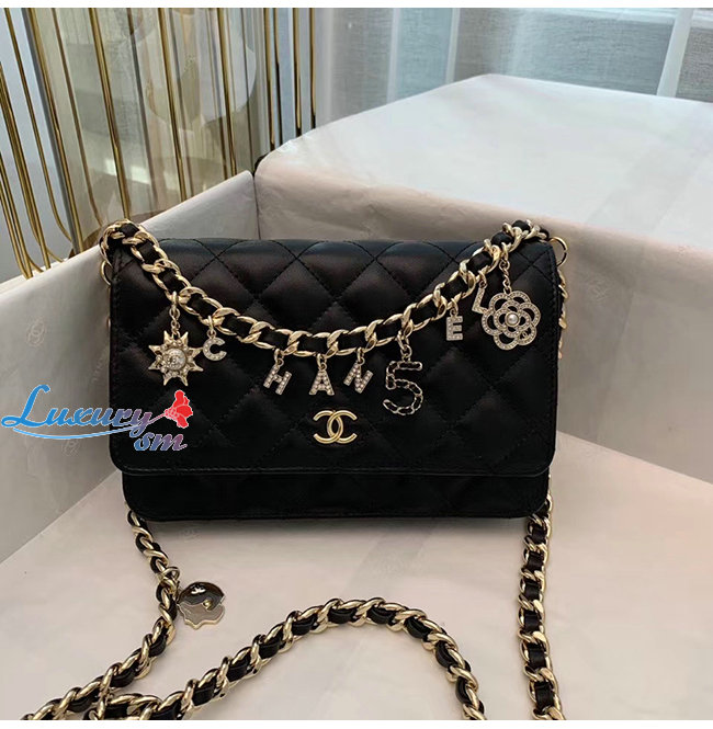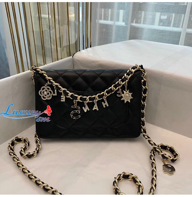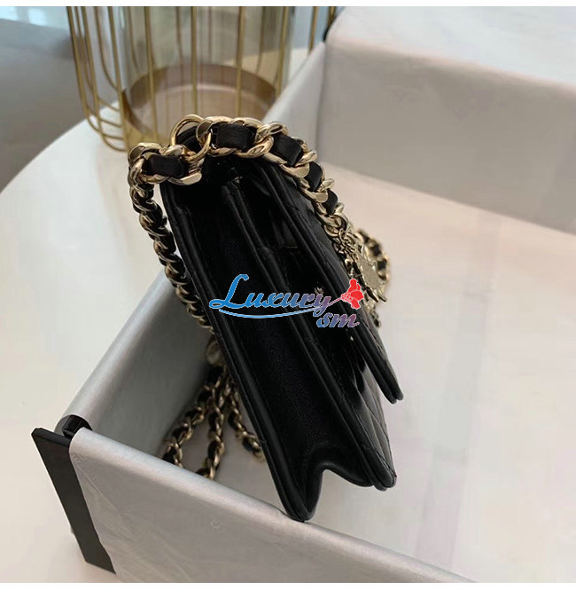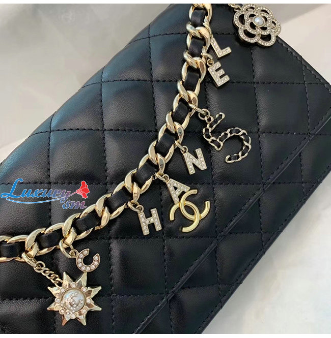[스페셜오더]CHANEL-AP1960 샤넬 블랙 램스킨 참장식 골드메탈 체인 지갑