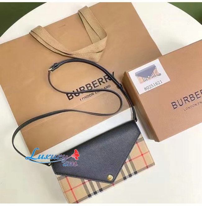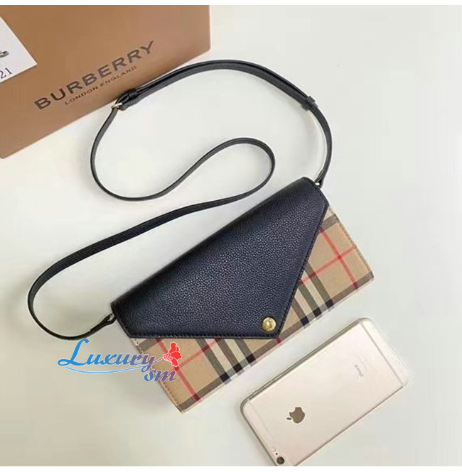 [스페셜오더]BURBERRY-80225601 버버리 블랙 디태처블 스트랩 빈티지 체크 레더 지갑
