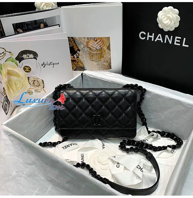 [스페셜오더]CHANEL-AP1954 샤넬 블랙 그레인 카프스킨 블랙 메탈 체인 월릿