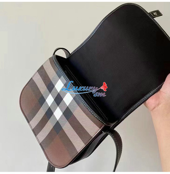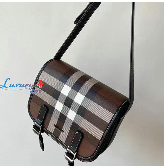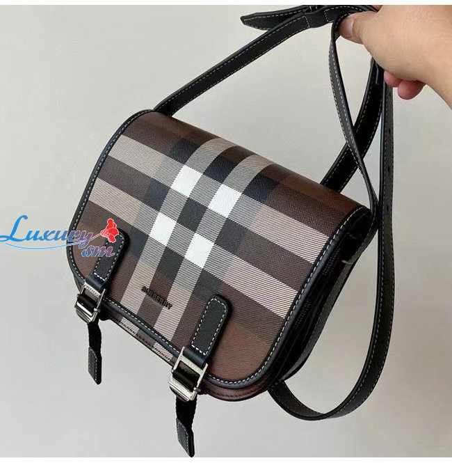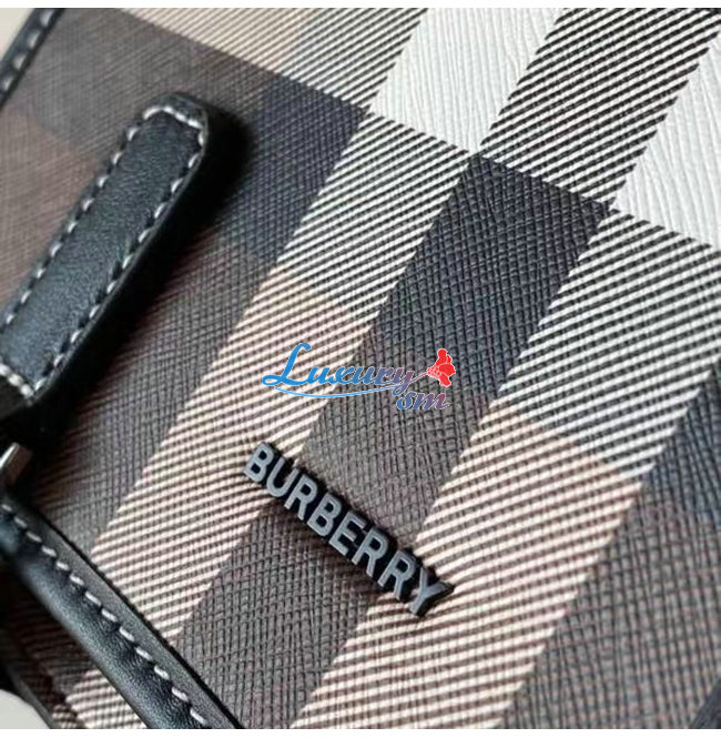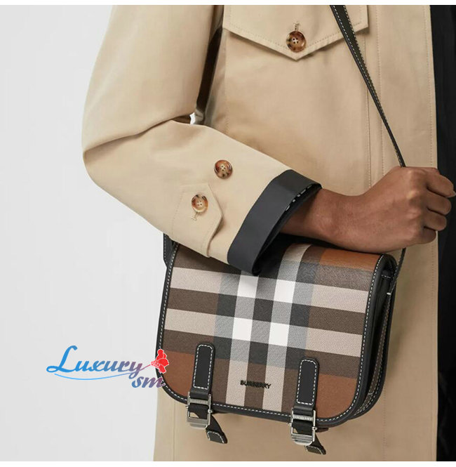 [스페셜오더]BURBERRY-80365521 버버리 다크 버치 브라운 체크 E-캔버스 메신저 백